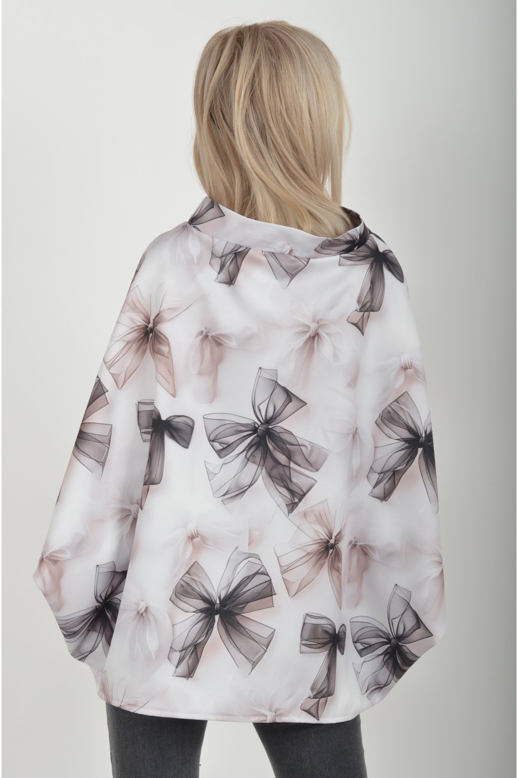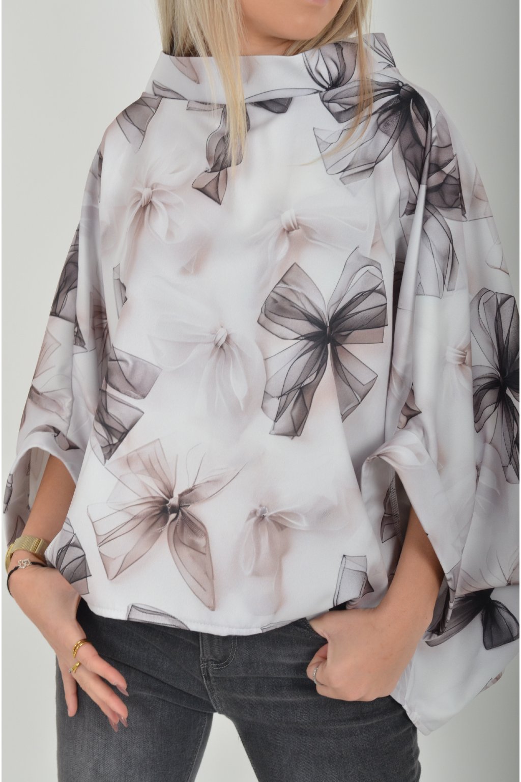 Halenka s netopýřím rukávem vhodná jak pro společenské události, tak i volnočasové nošení. Je vyrobena z velice příjemného a pevného materiálu. Přední část halenky je kratší než zadní. Je volnějšího střihu.