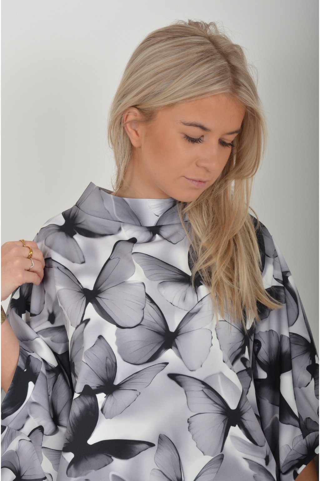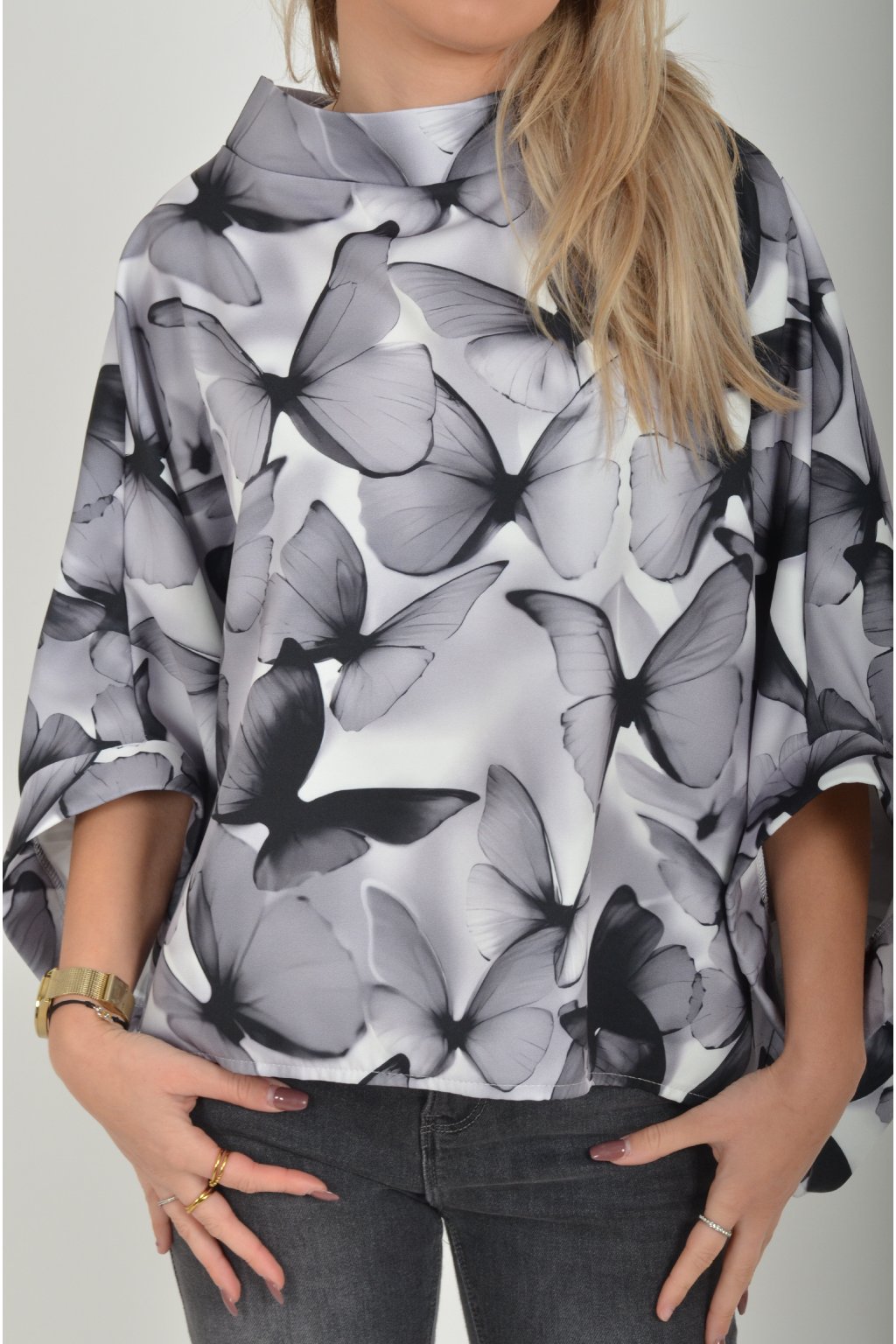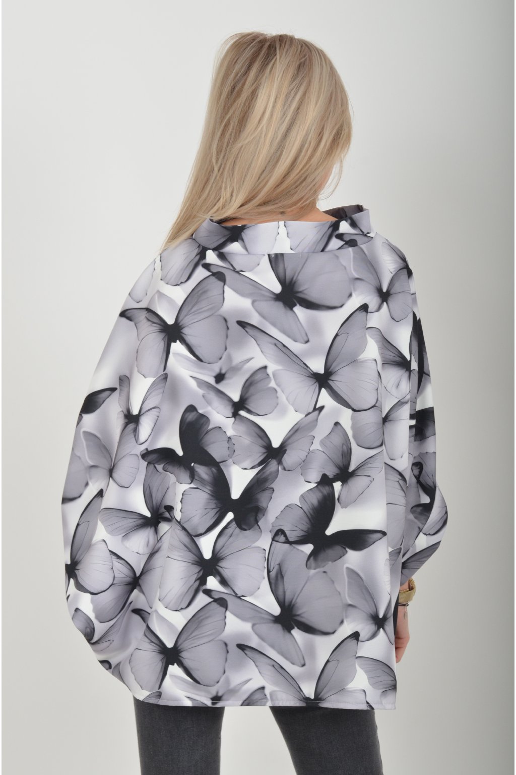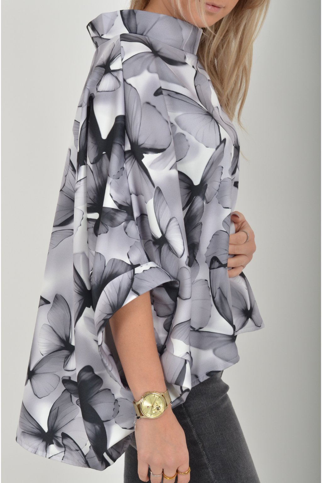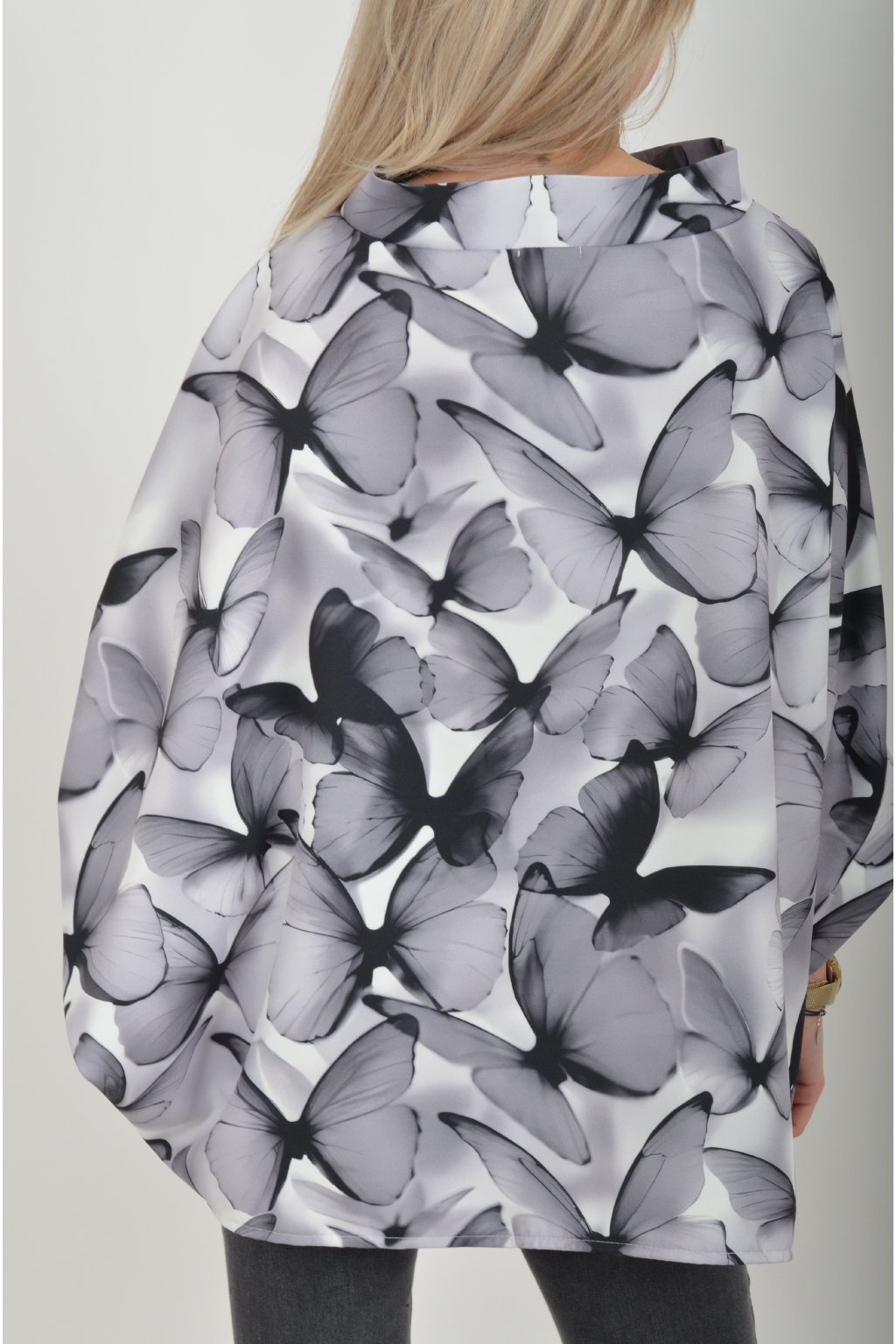 Halenka s netopýřím rukávem vhodná jak pro společenské události, tak i volnočasové nošení. Je vyrobena z velice příjemného a pevného materiálu. Přední část halenky je kratší než zadní. Je volnějšího střihu.