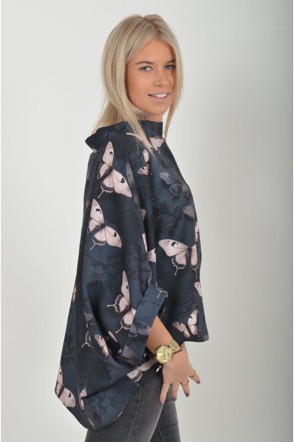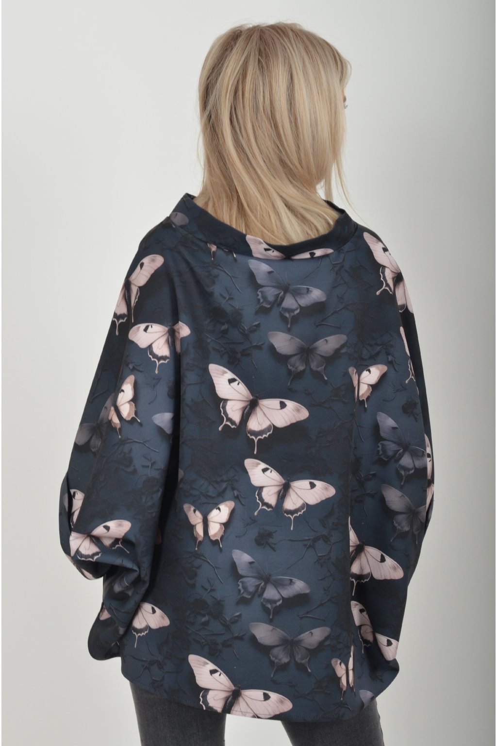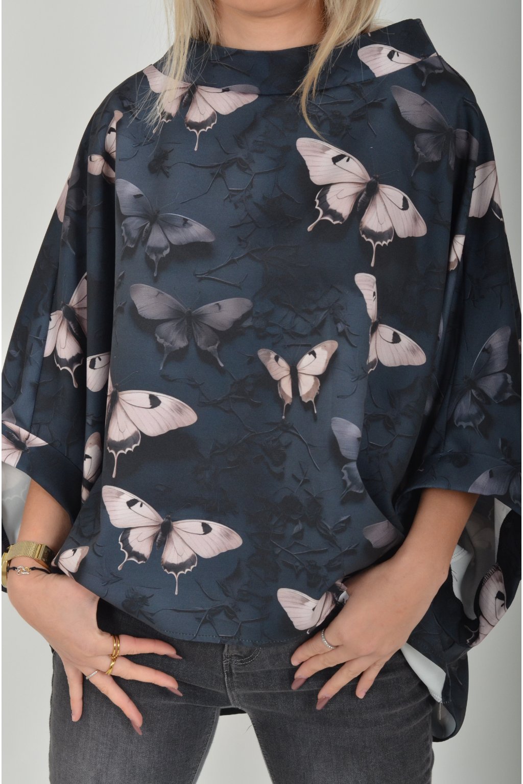Halenka s netopýřím rukávem vhodná jak pro společenské události, tak i volnočasové nošení. Je vyrobena z velice příjemného a pevného materiálu. Přední část halenky je kratší než zadní. Je volnějšího střihu.