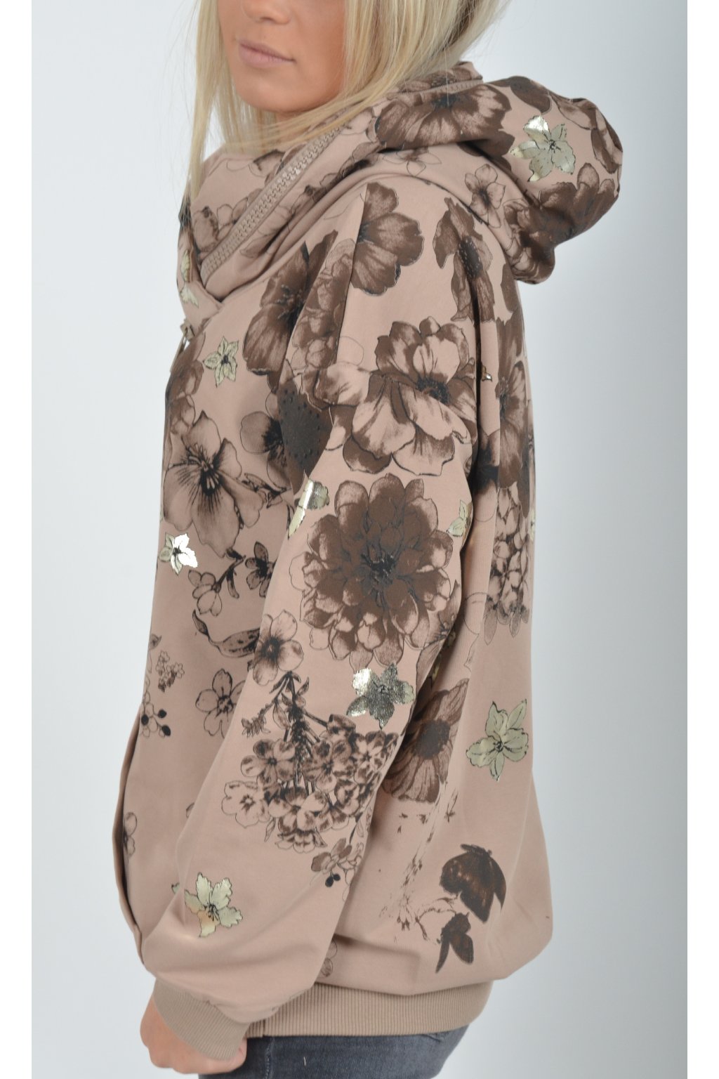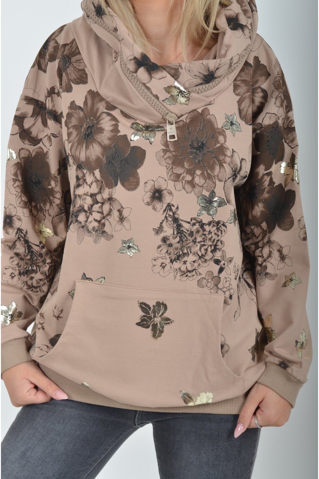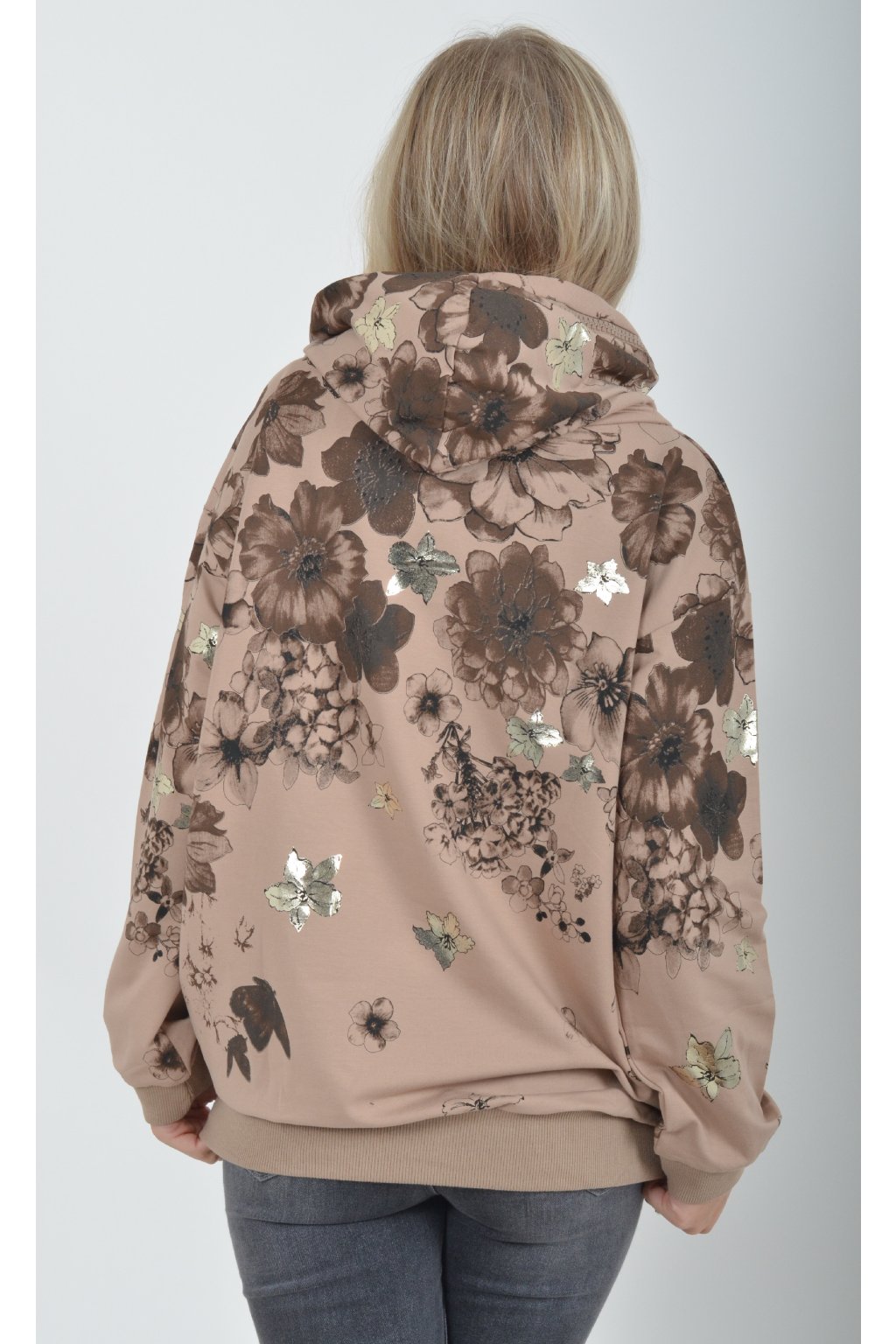 Vzorovaná hnědá mikina ES5733