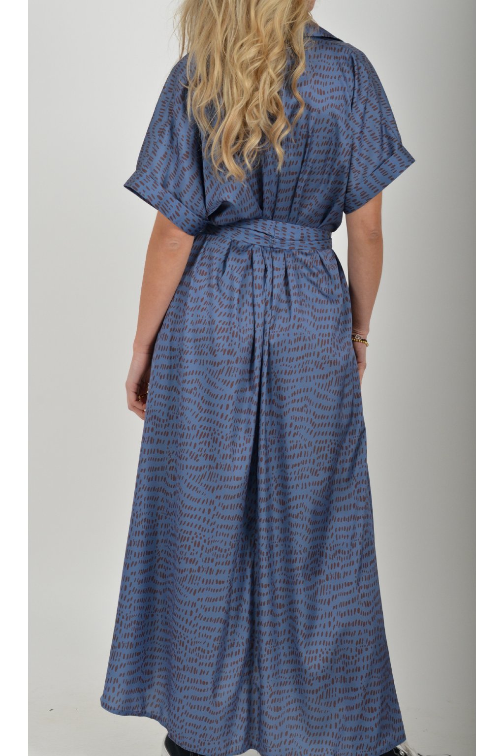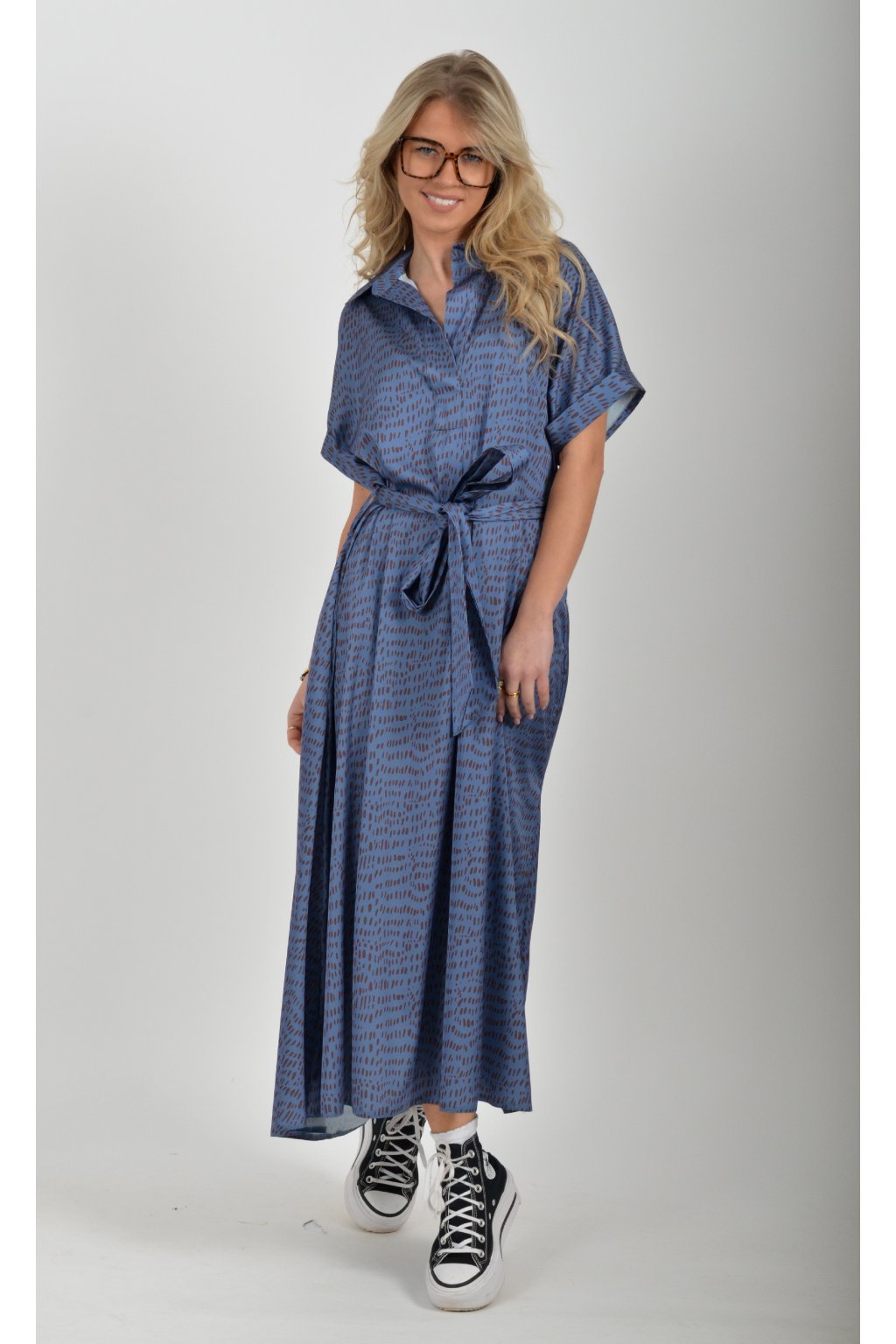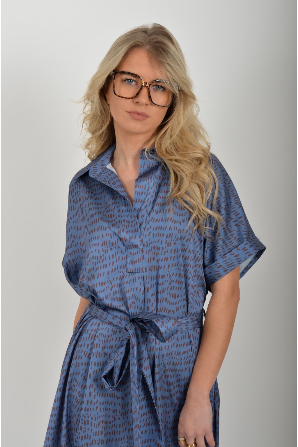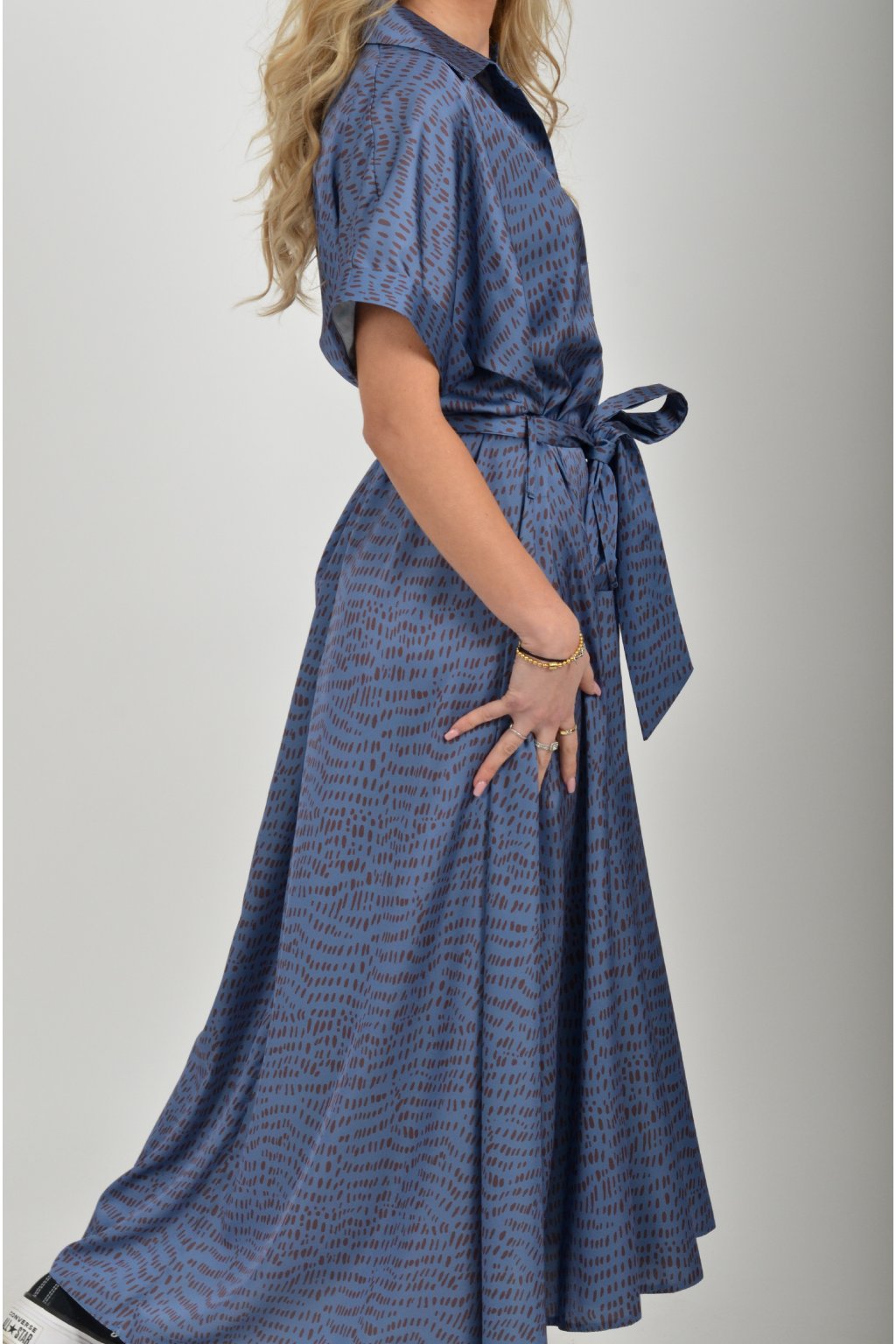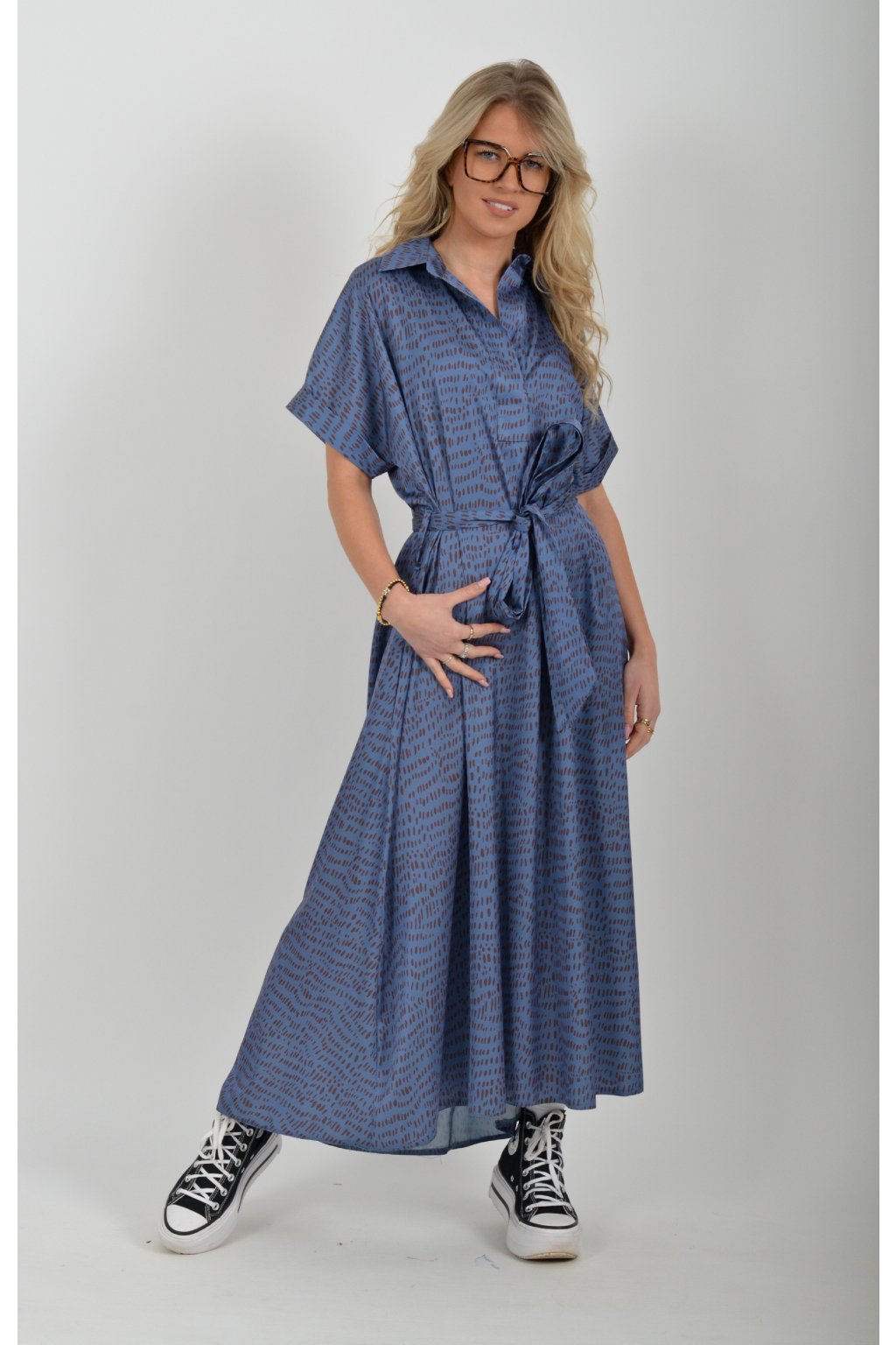 Luxusní šaty od značky La Furia. Mají košilový áčkový střih s rozevlátou sukní, která je v zadní části mírně delší. Šaty mají na bocích kapsy. Jsou vyrobené z velice příjemného prémiového materiálu.