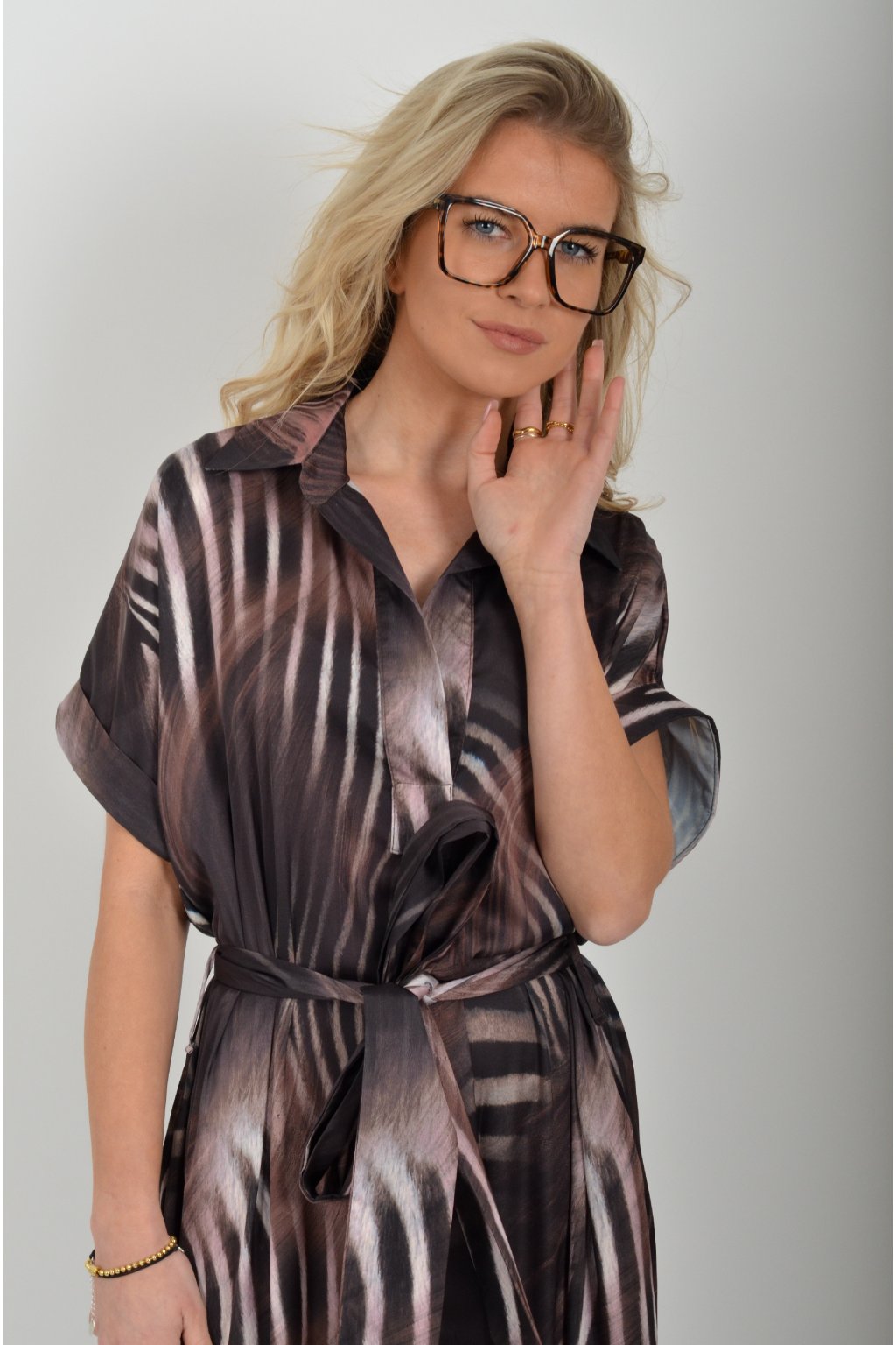 Luxusní šaty od značky La Furia. Mají košilový áčkový střih s rozevlátou sukní, která je v zadní části mírně delší. Šaty mají na bocích kapsy. Jsou vyrobené z velice příjemného prémiového materiálu.