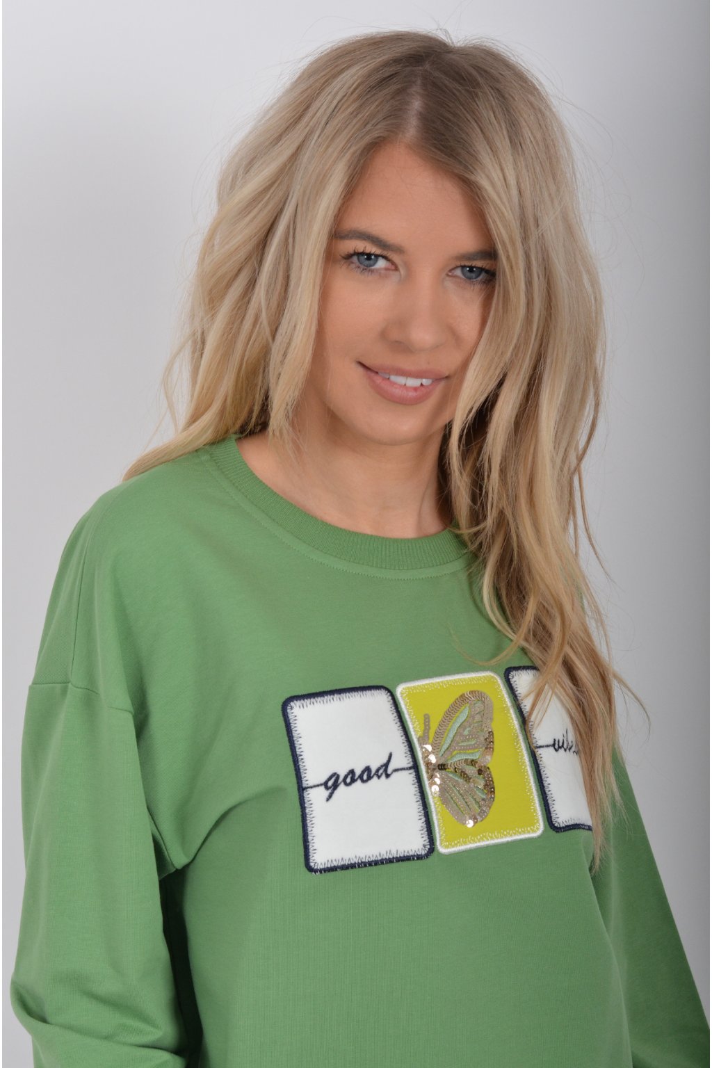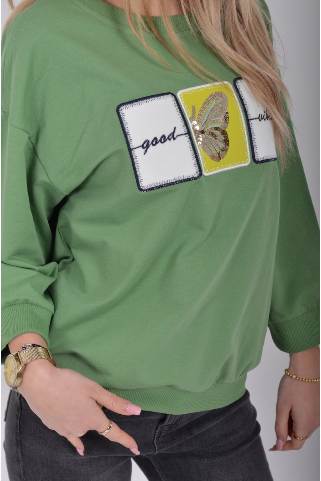 Mikina turecké značky Megi s 3/4 rukávem, a vyšívaným vzorem. Je ideální pro nošení do jarního počasí. Je vyrobena z velice příjemné a kvalitnáí turecké bavlny. Ve spodní části je do rantlu.