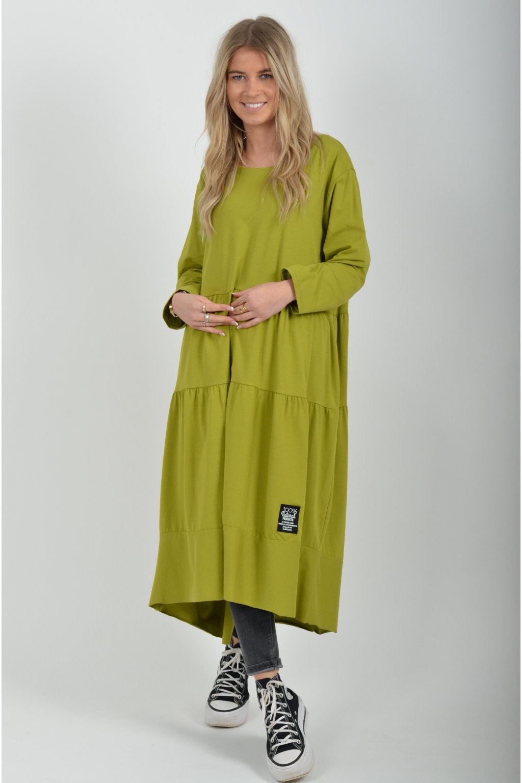 Jednobarevné dlouhé šaty s 3/4 rukávem. Šaty jsou nesmírně pohodlné a vhodné pro každodenní nošení. Jsou vyrobené z velice příjemné bavlny a nemají kapsy.