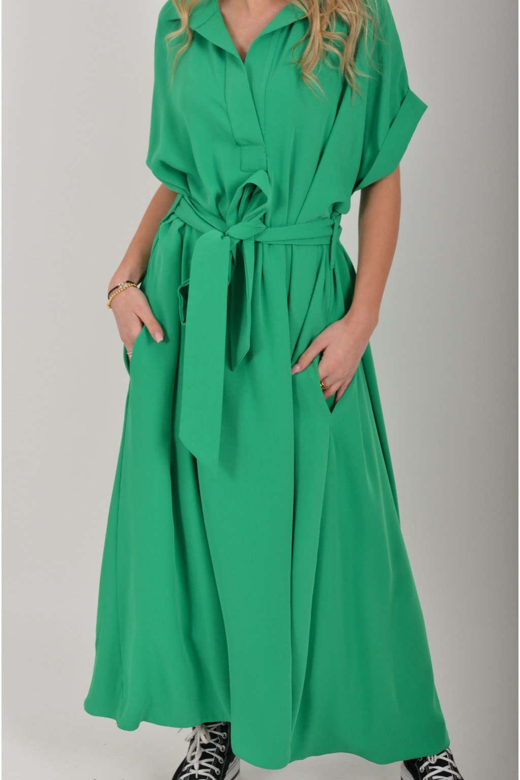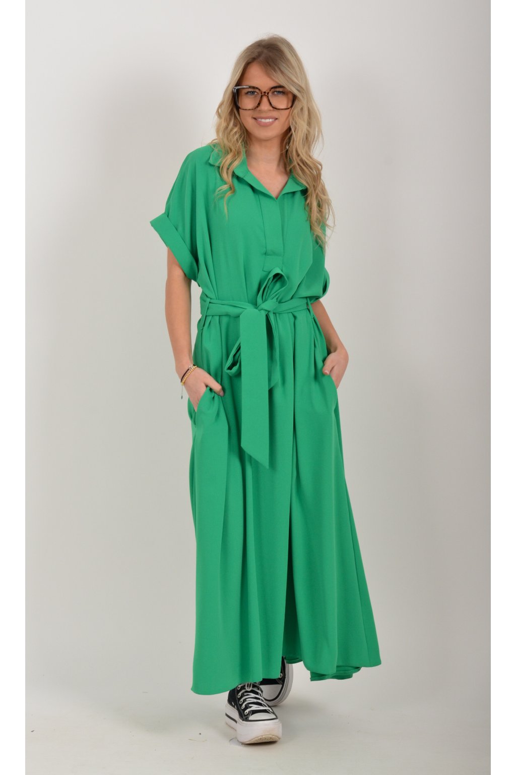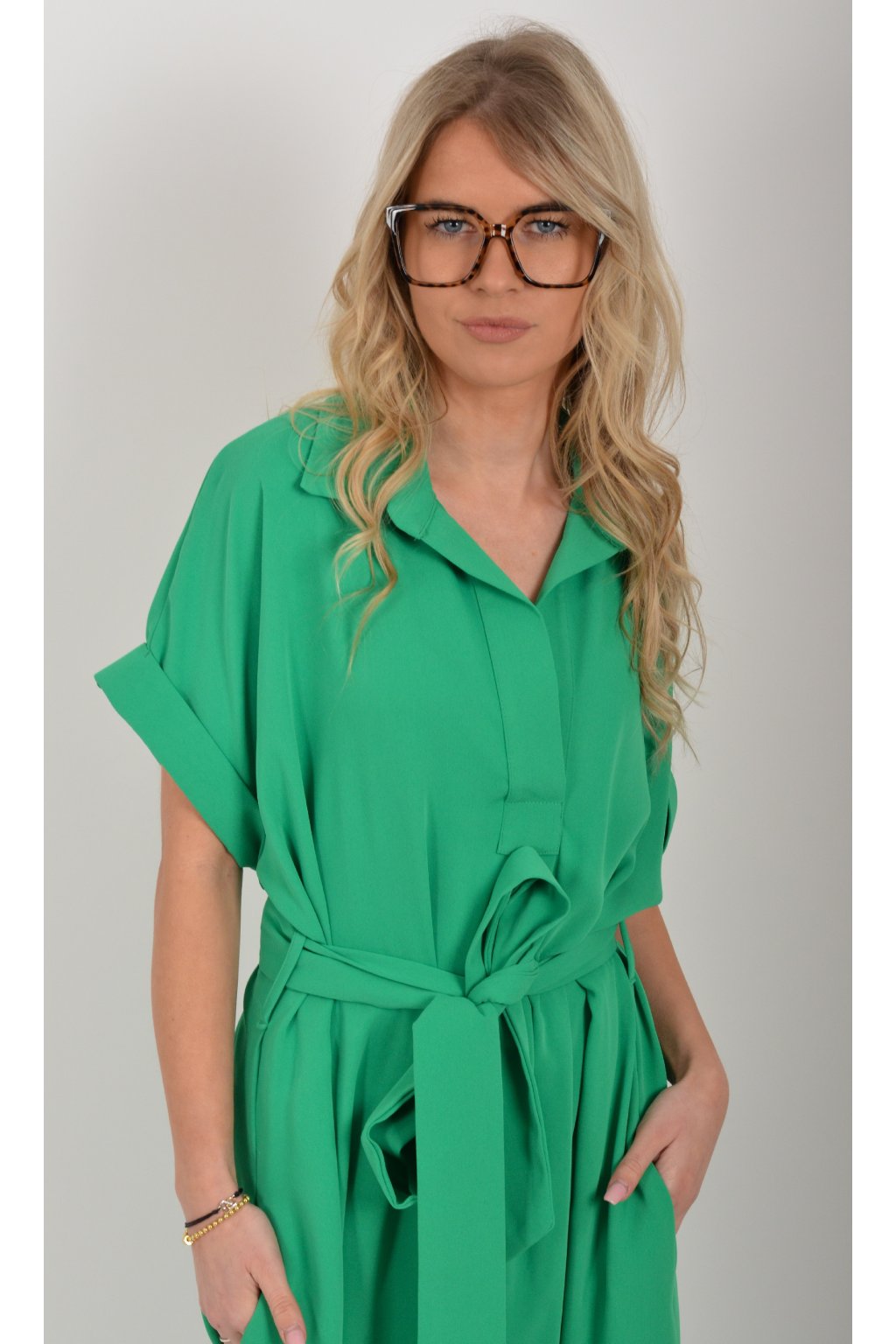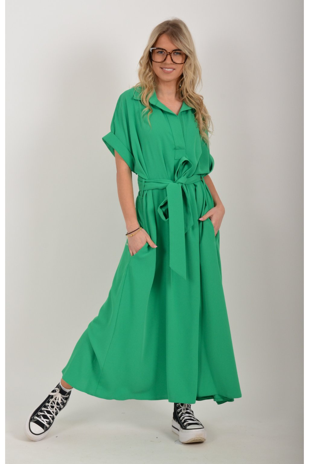 Luxusní šaty od značky La Furia. Mají košilový áčkový střih s rozevlátou sukní, která je v zadní části mírně delší. Šaty mají na bocích kapsy. Jsou vyrobené z velice příjemného prémiového materiálu.