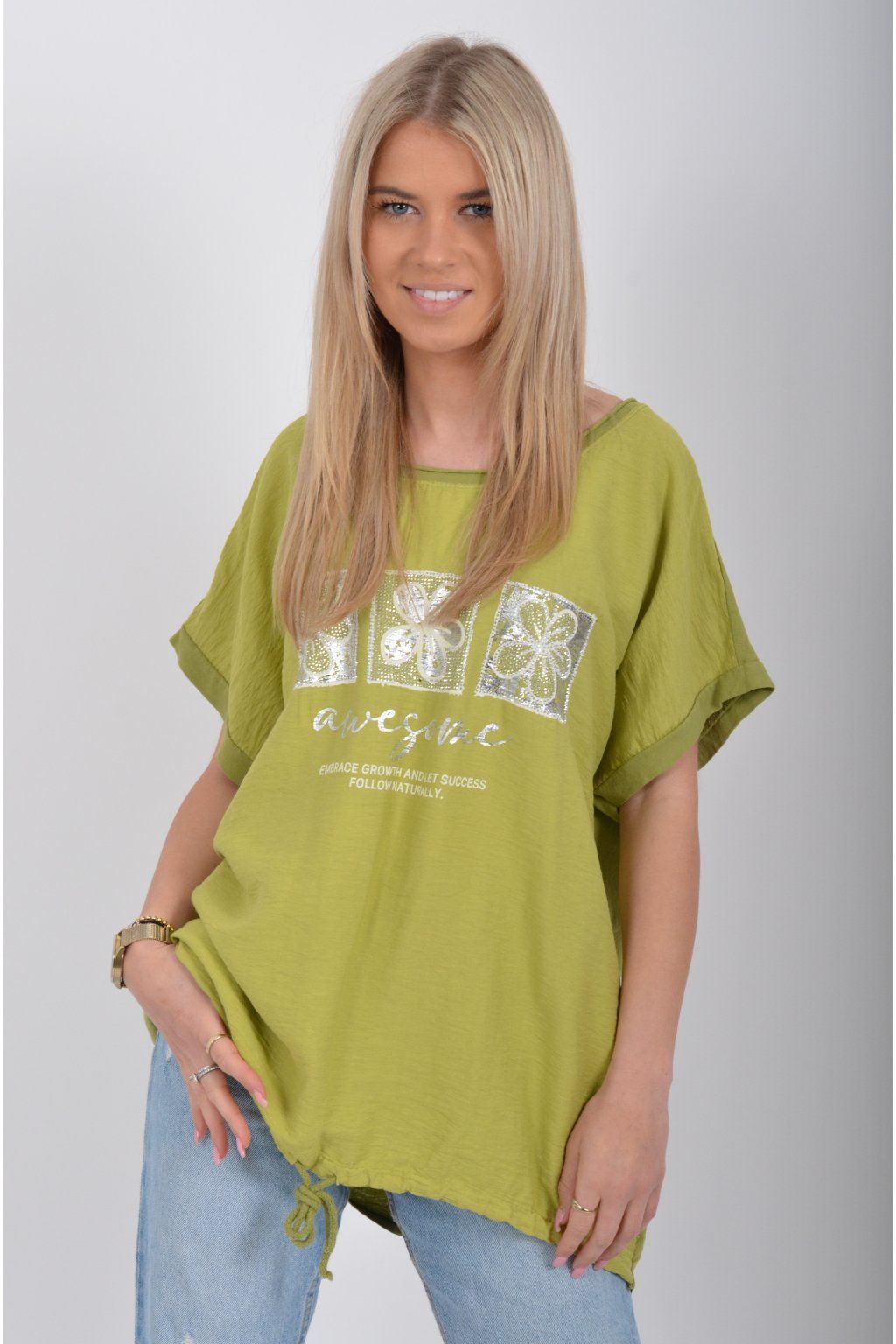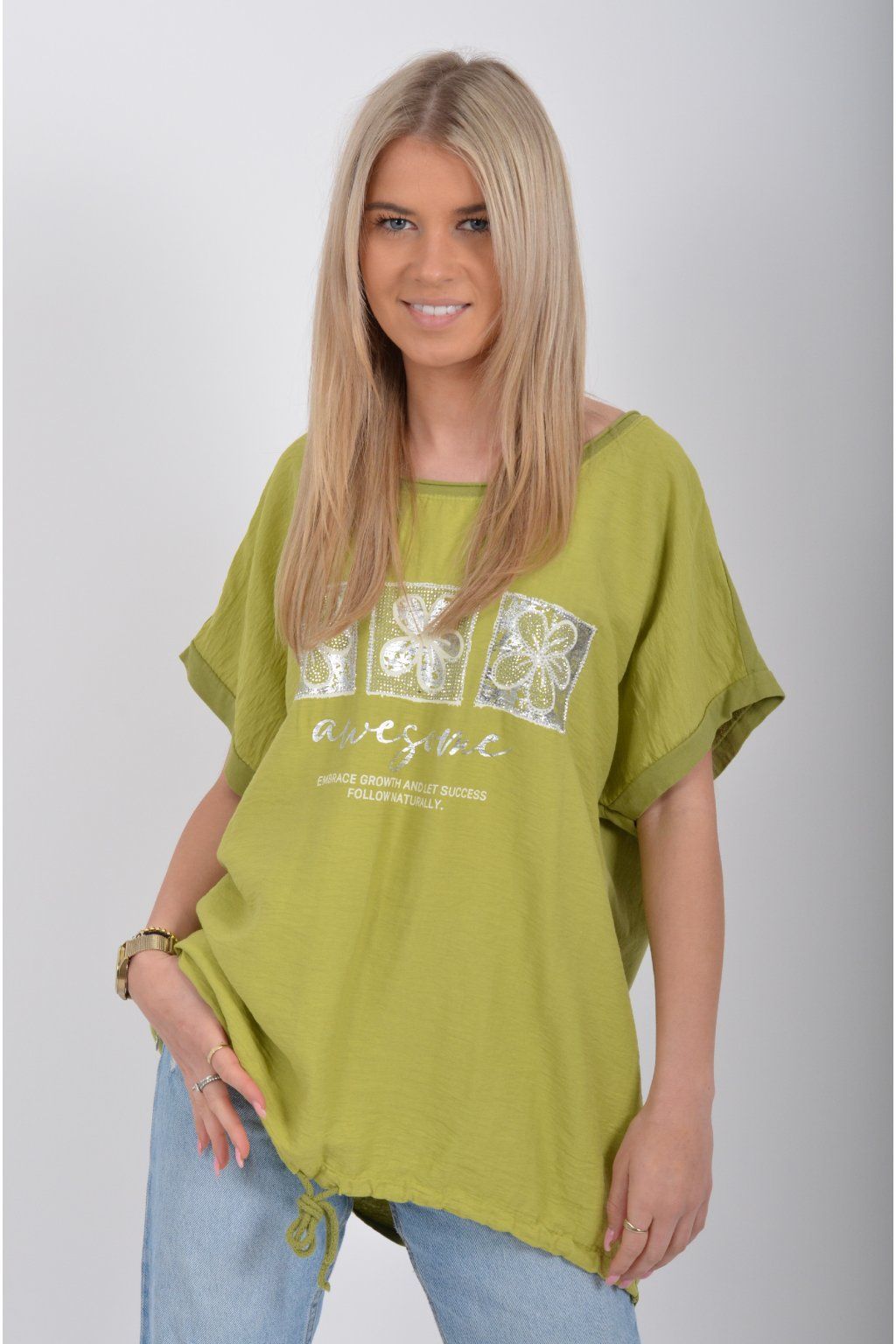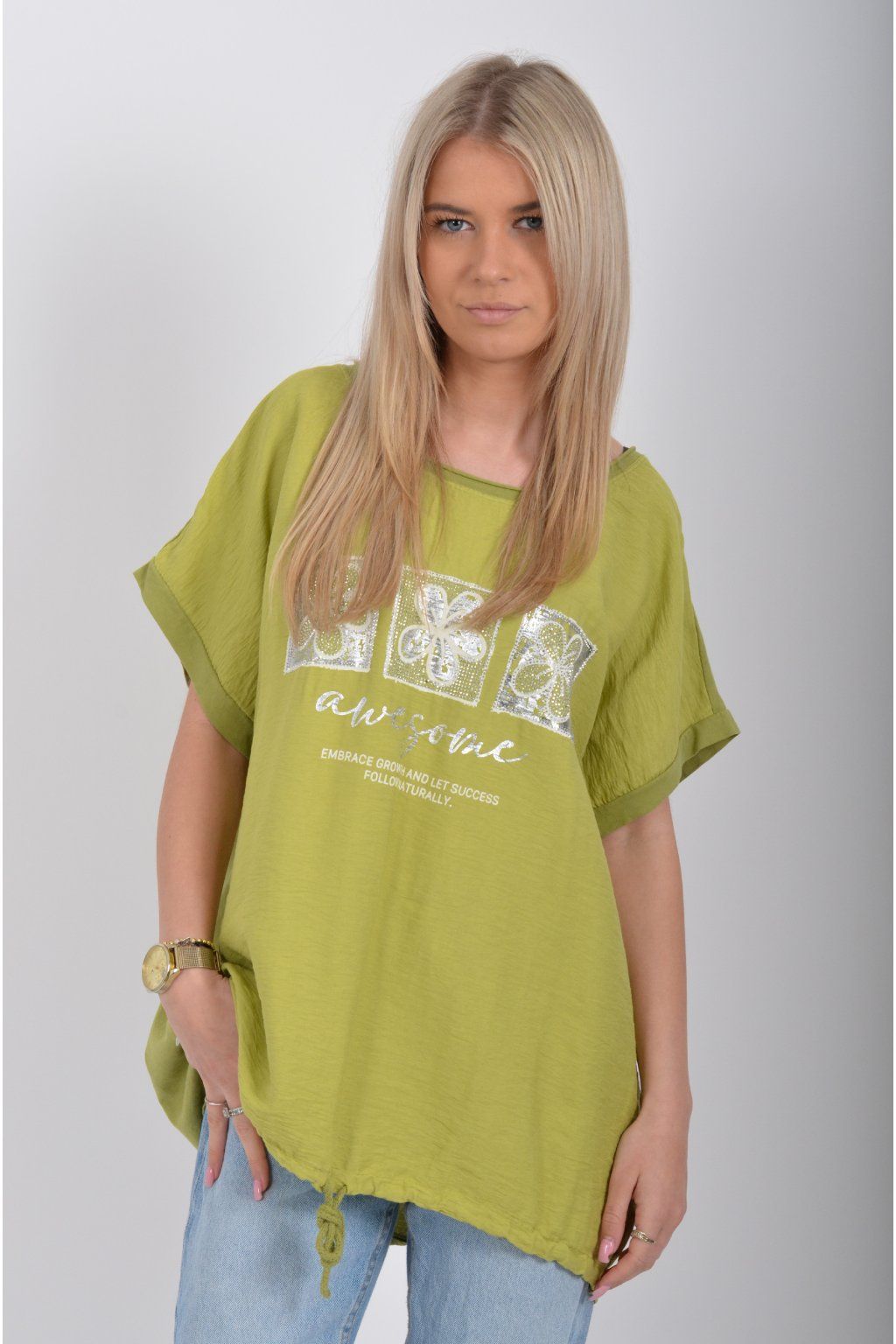 Tričko s krátkým rukávem potiskem a kamínkovým zdobením. Tričko je vyrobené z velice příjemného materiálu. Ve spodní části je zapracovaná tkanice pro libovolné stažení.