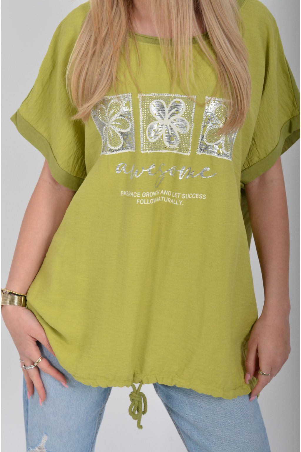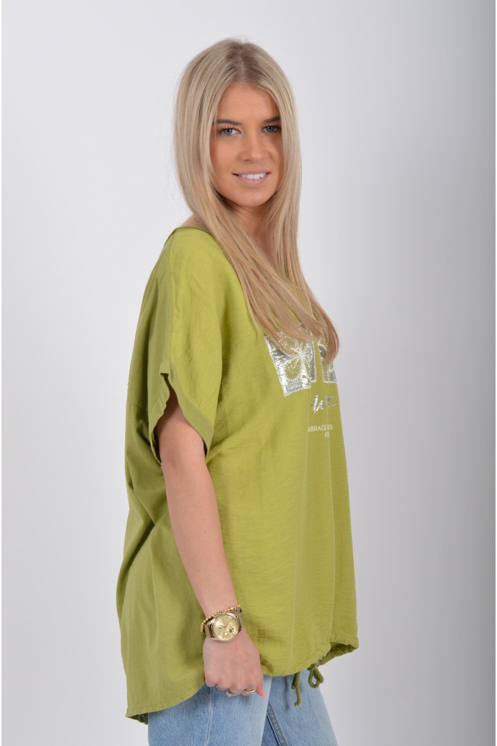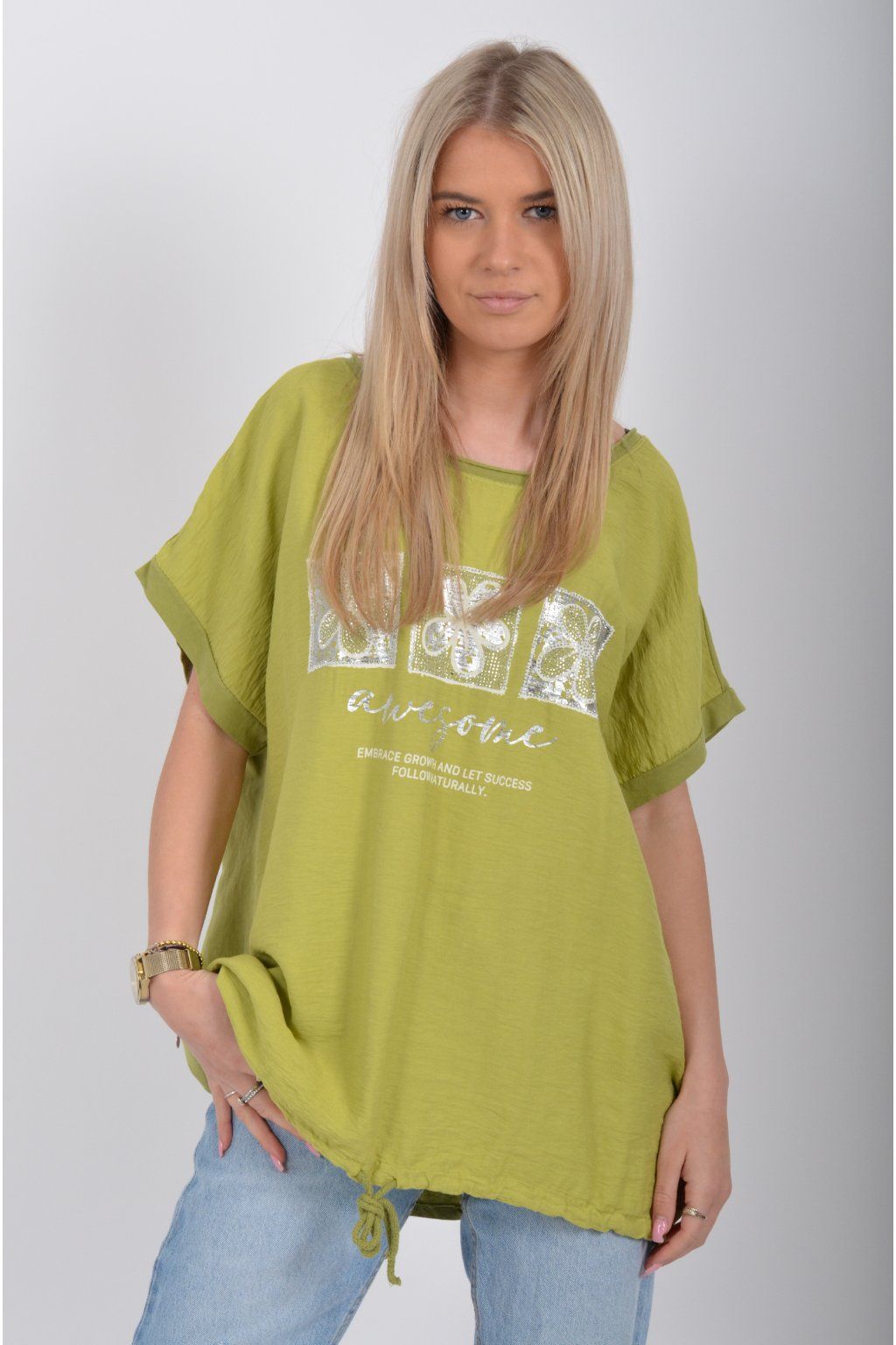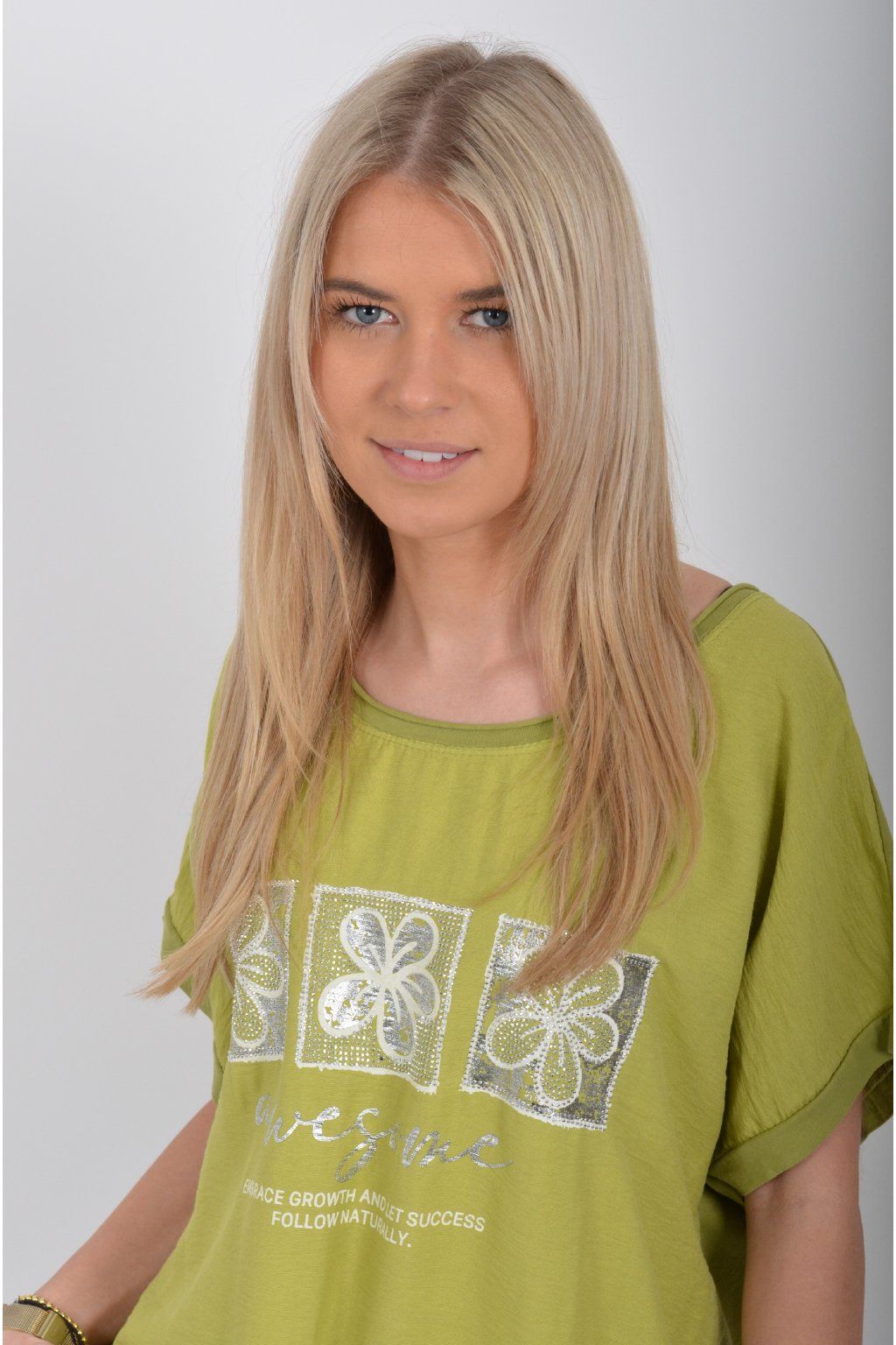 Tričko s krátkým rukávem potiskem a kamínkovým zdobením. Tričko je vyrobené z velice příjemného materiálu. Ve spodní části je zapracovaná tkanice pro libovolné stažení.