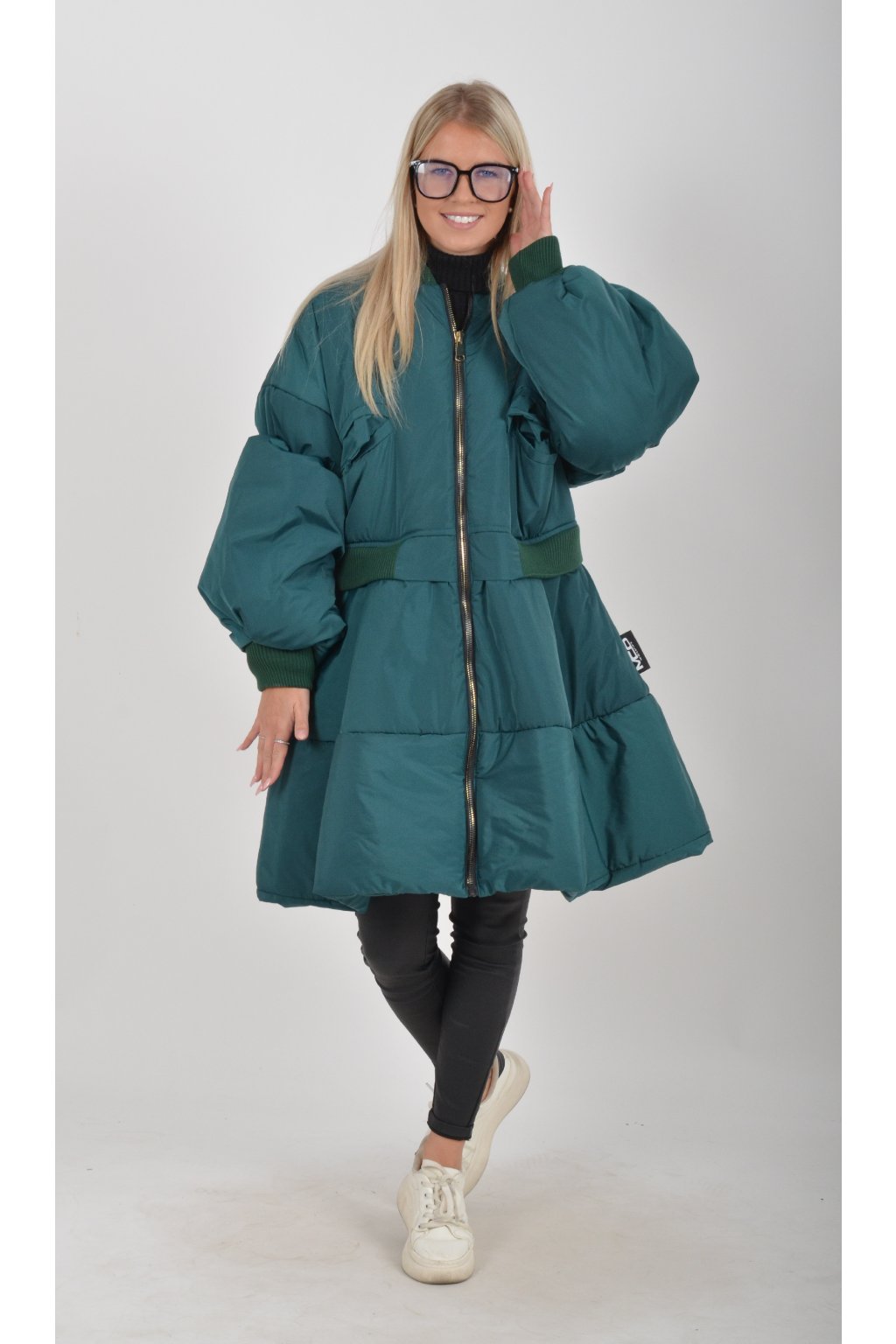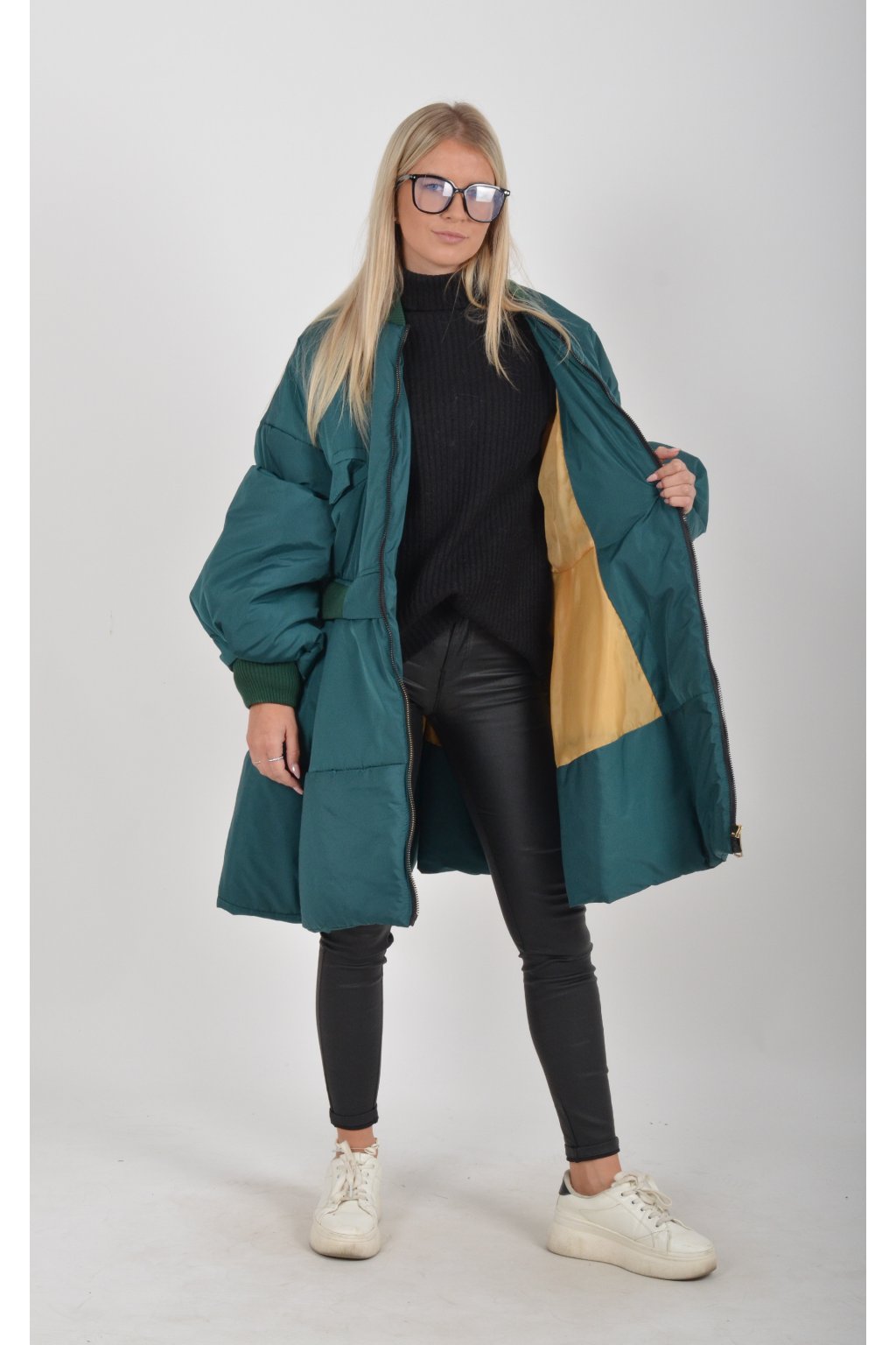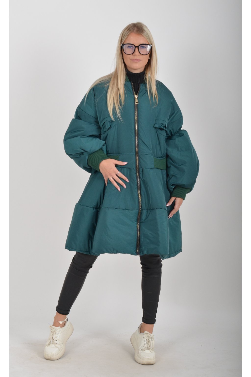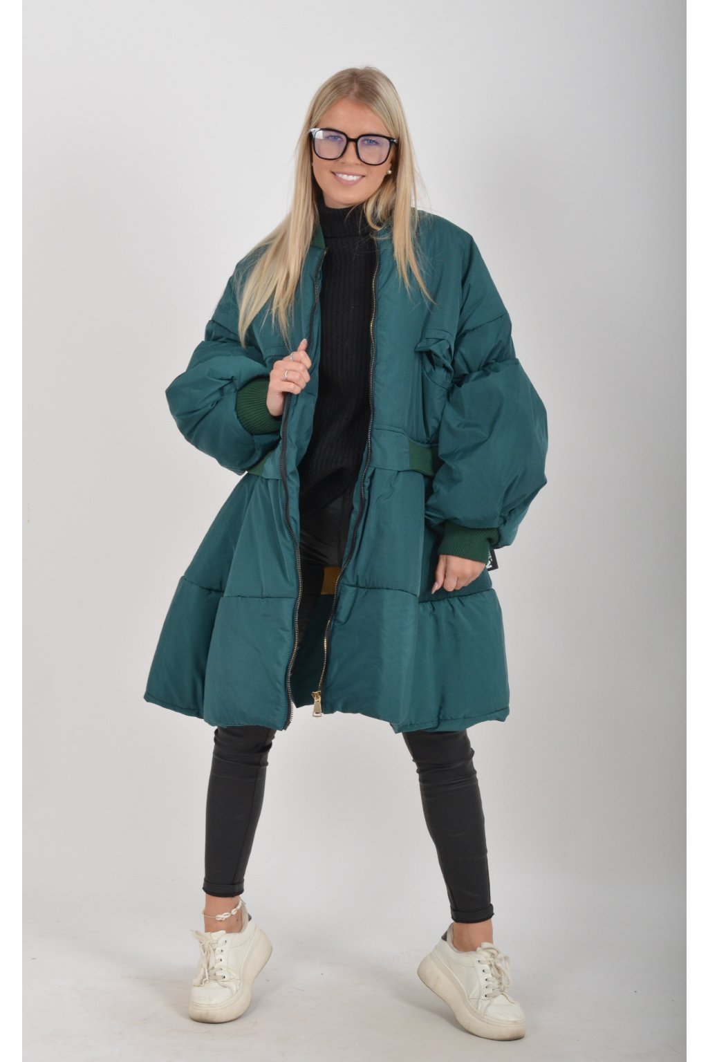 Prošívaný zimní kabát s náprsními kapsami. Střih kabátu je princeznovský, rukávy jsou do nápletu. Materiál je velmi příjemný a hřejivý.
