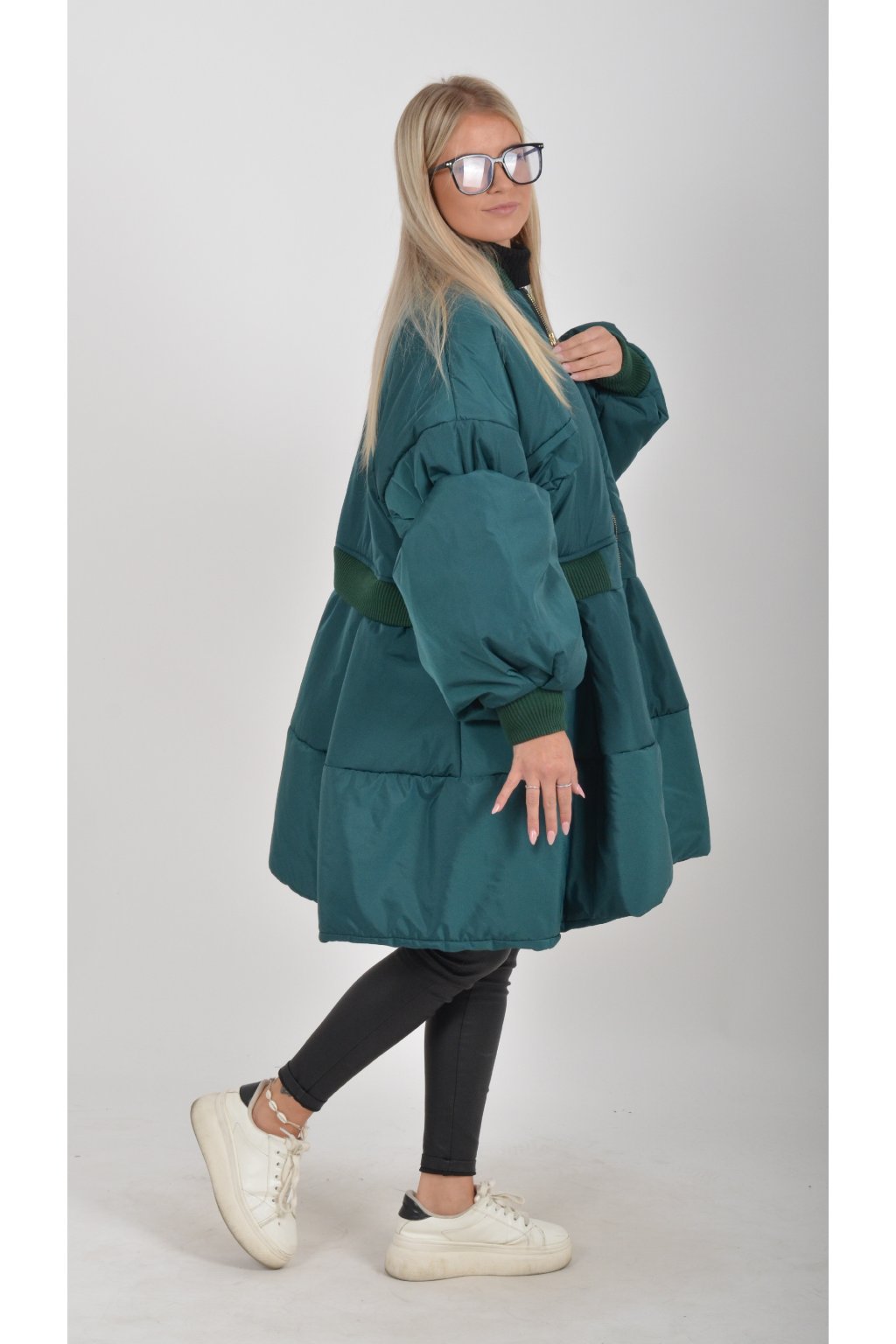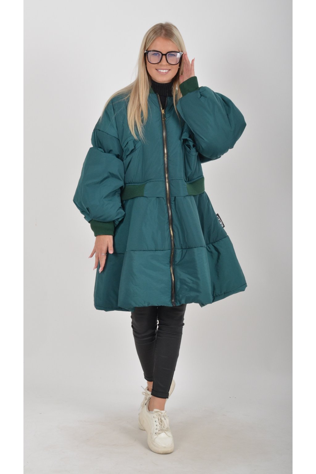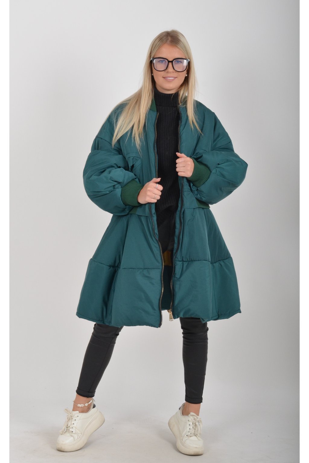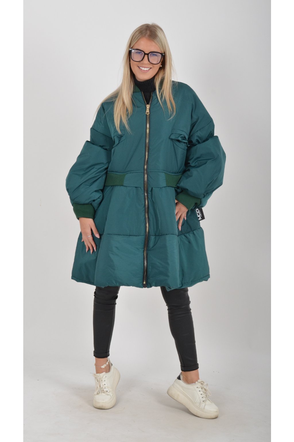Prošívaný zimní kabát s náprsními kapsami. Střih kabátu je princeznovský, rukávy jsou do nápletu. Materiál je velmi příjemný a hřejivý.