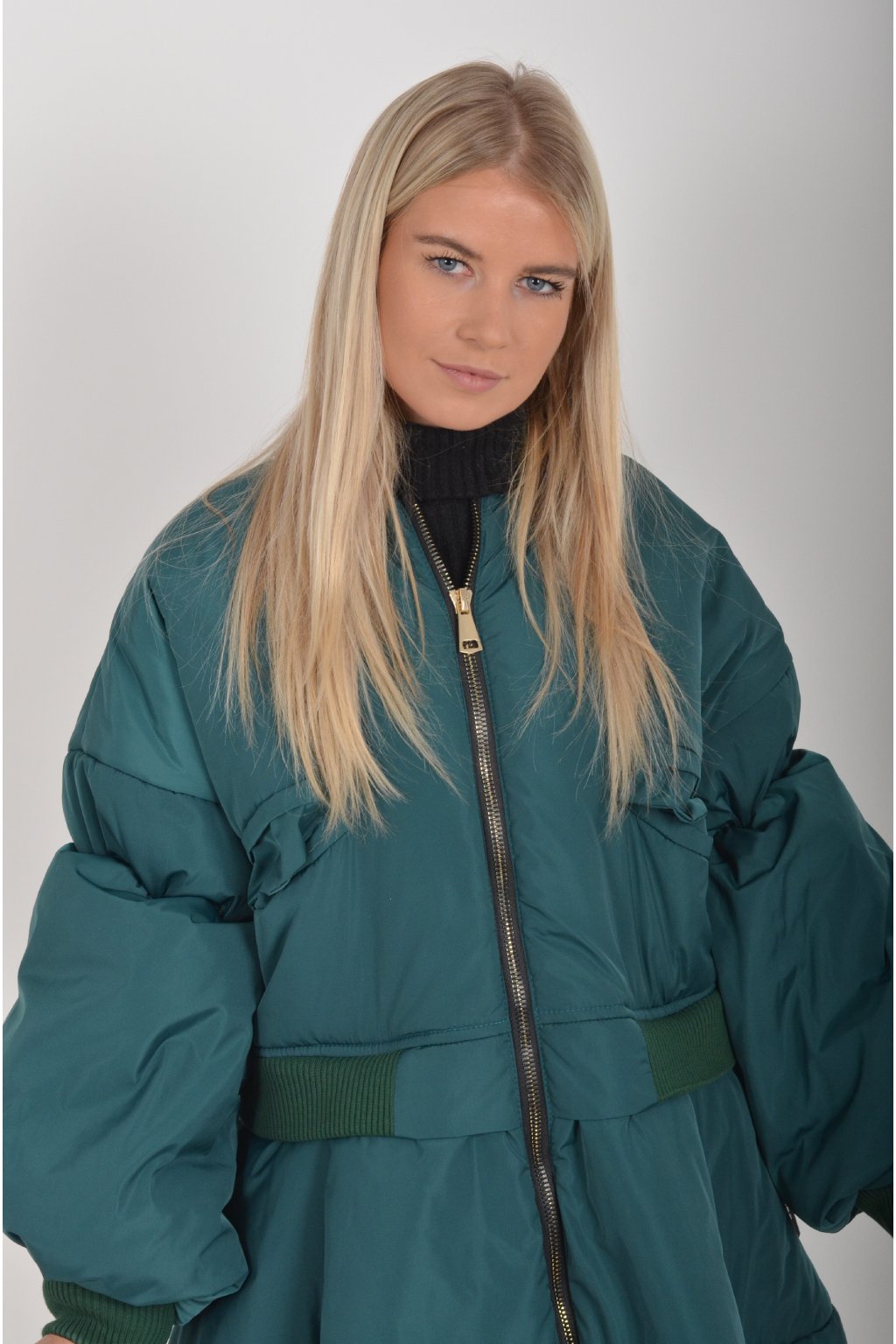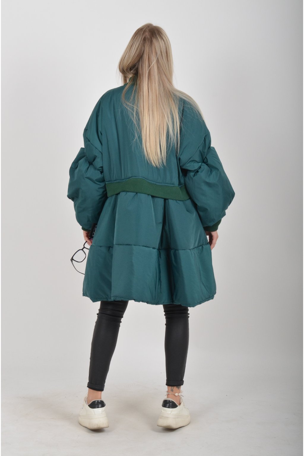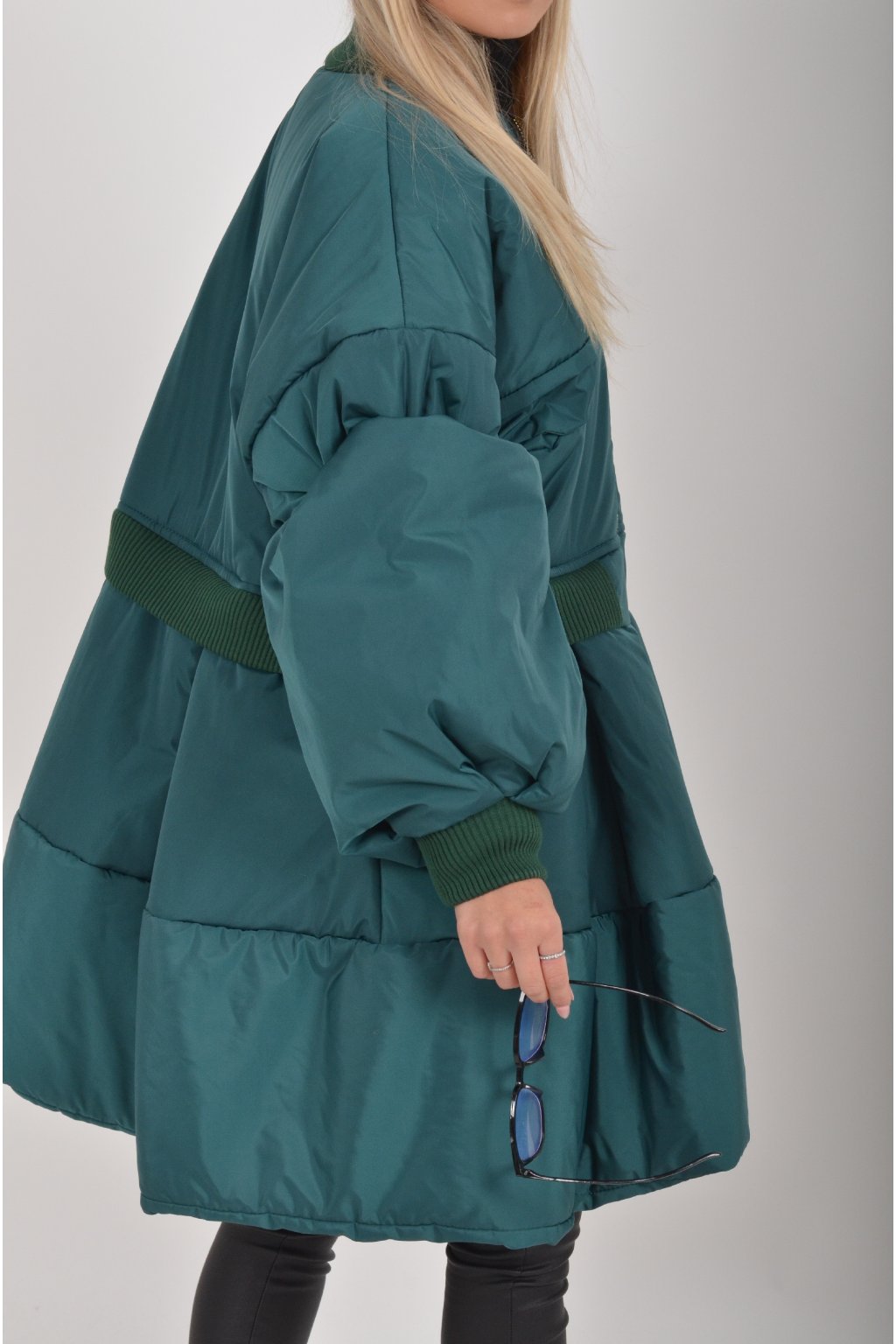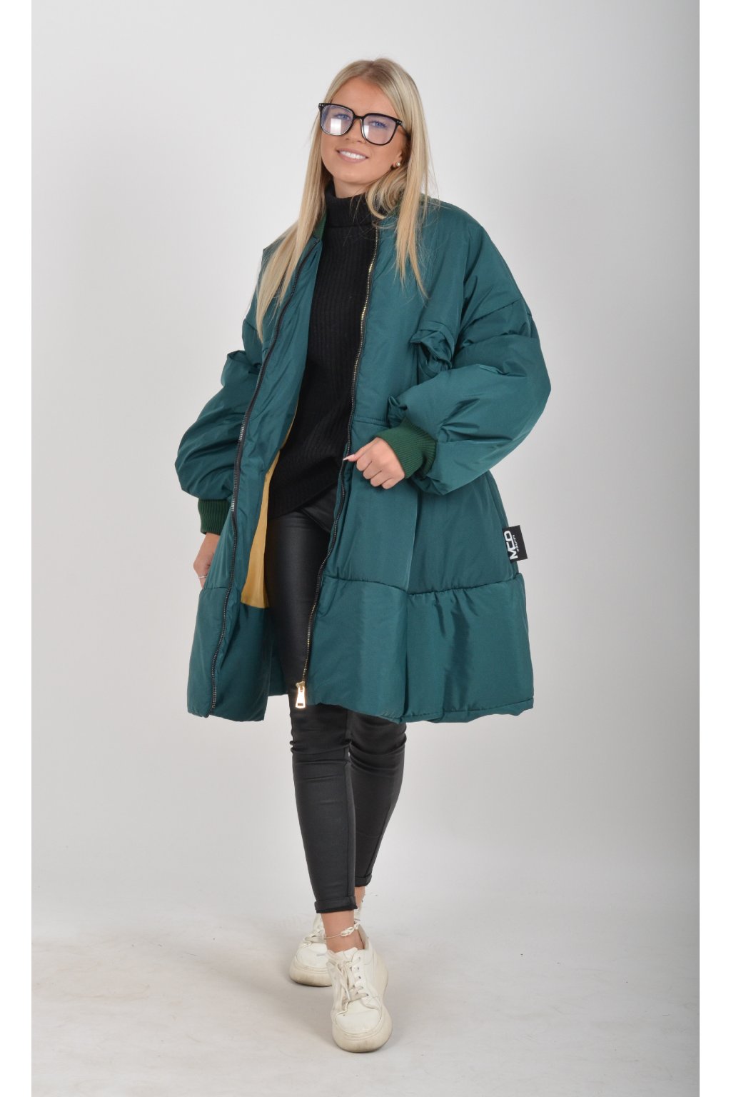 Prošívaný zimní kabát s náprsními kapsami. Střih kabátu je princeznovský, rukávy jsou do nápletu. Materiál je velmi příjemný a hřejivý.