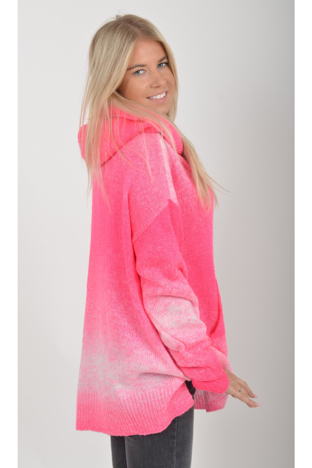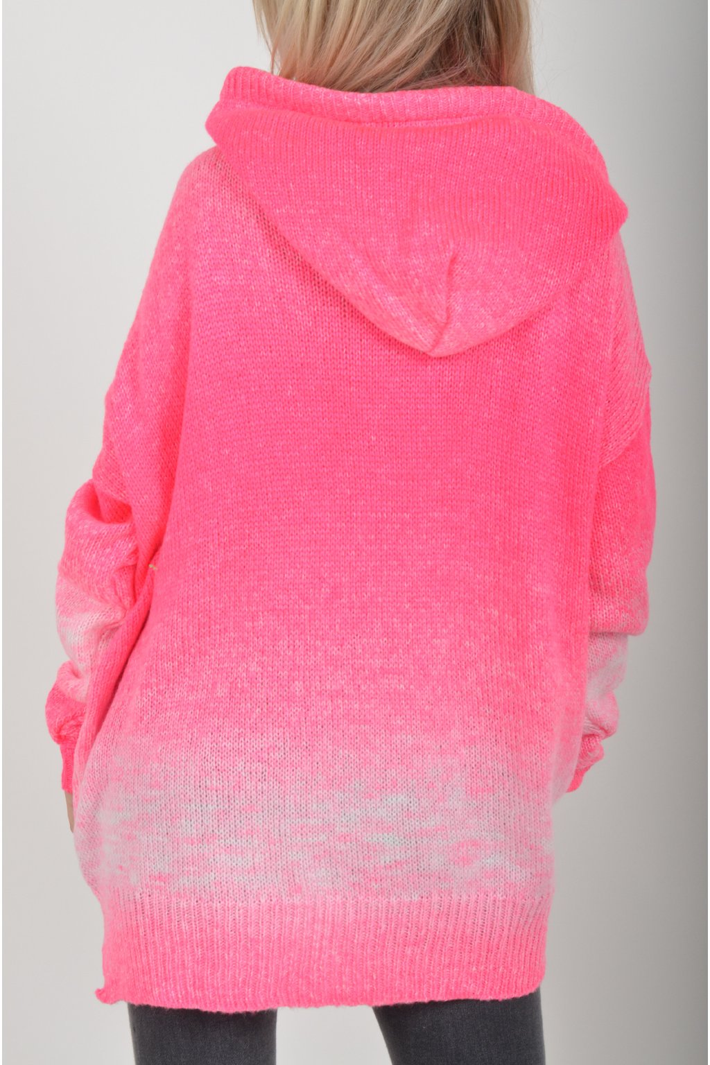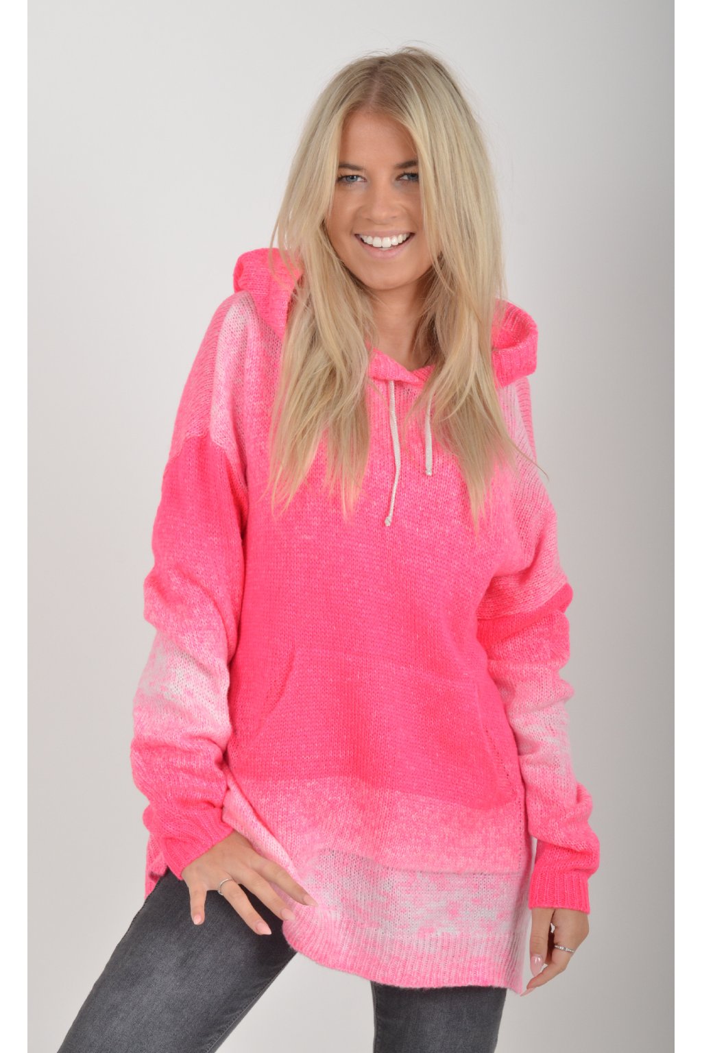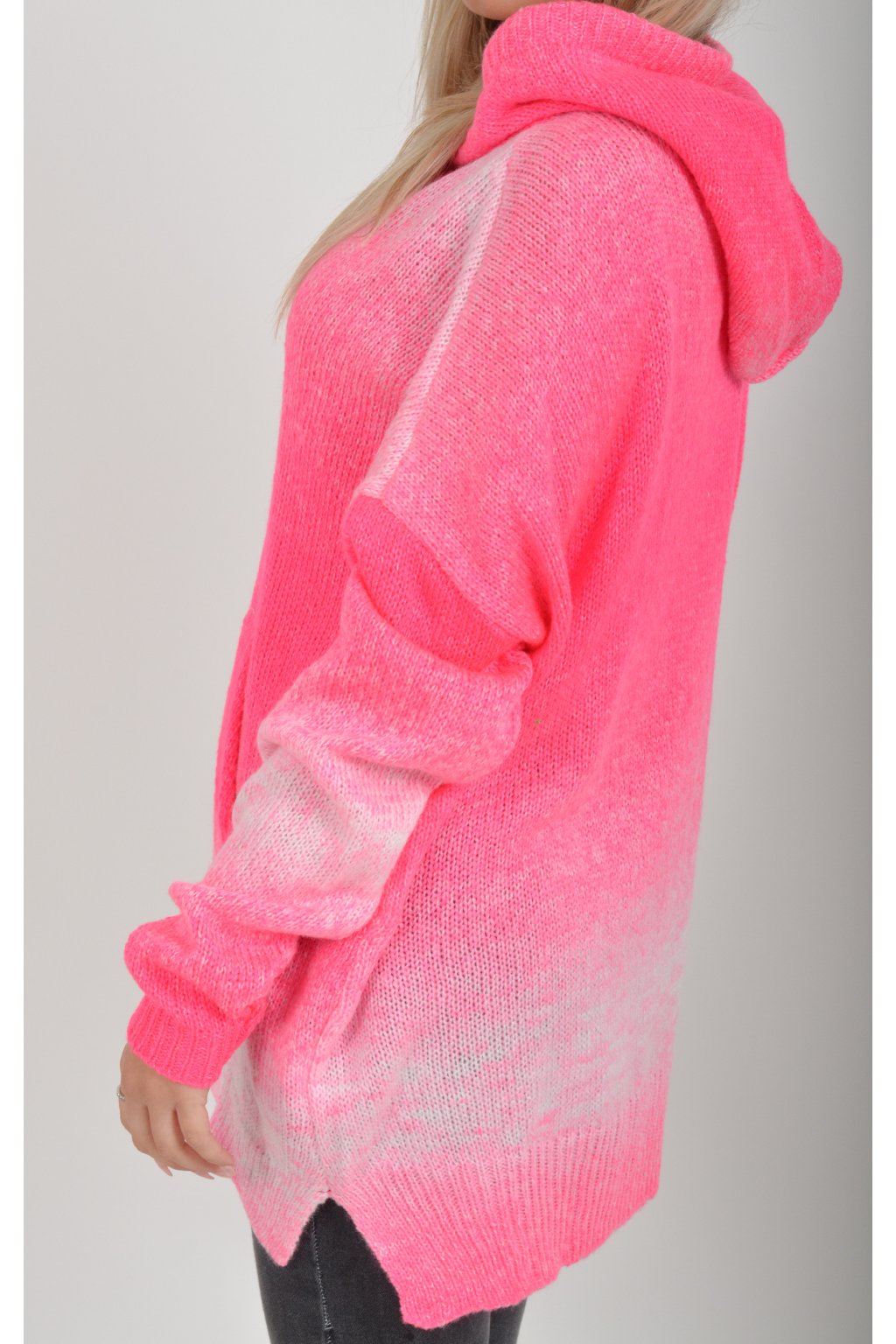 Žíhaný elastický svetr s dlouhým rukávem s barevnou kombinací, růžová a bílá. Svetr má kapuci a klokaní kapsu a je z velice příjemného a nekousavého materiálu.