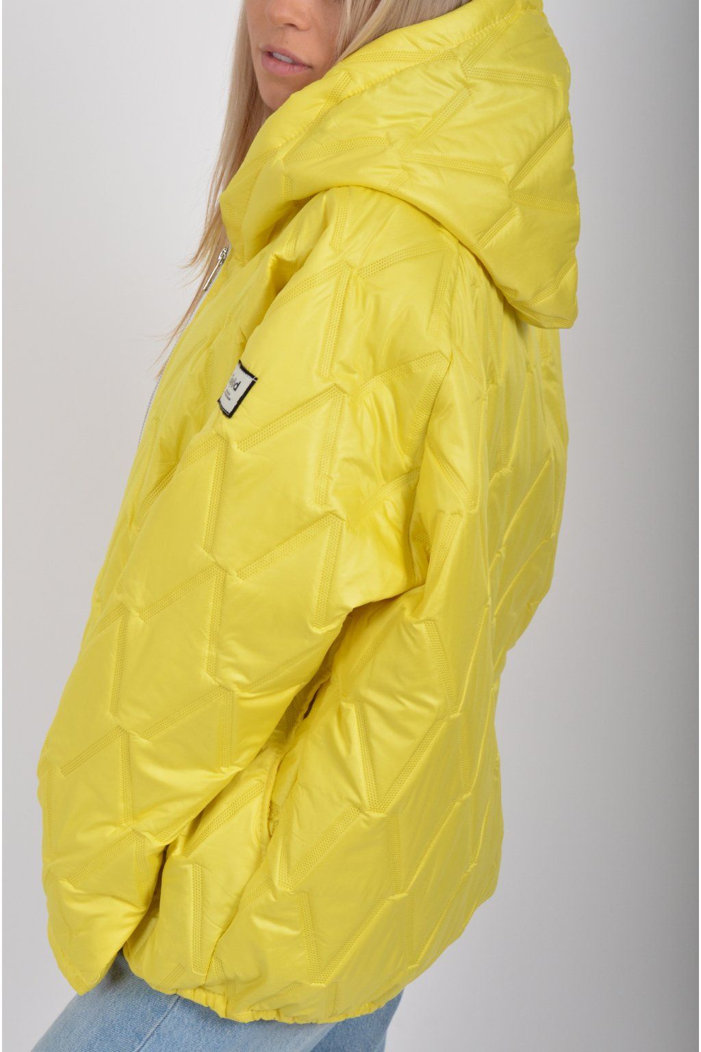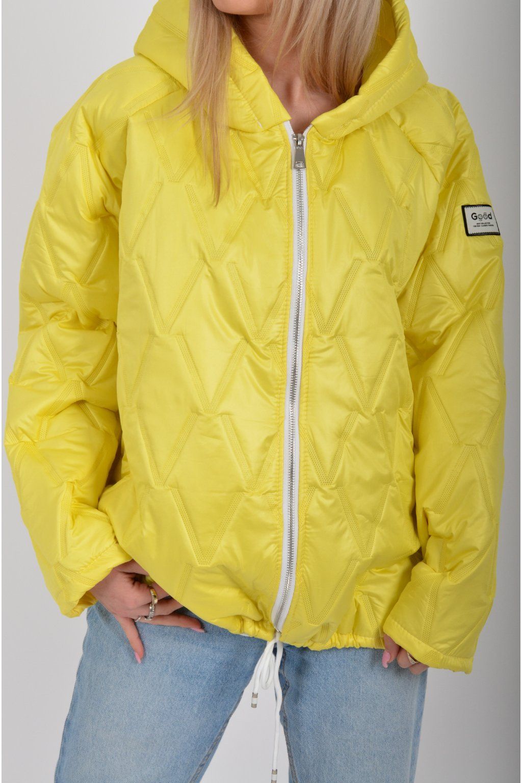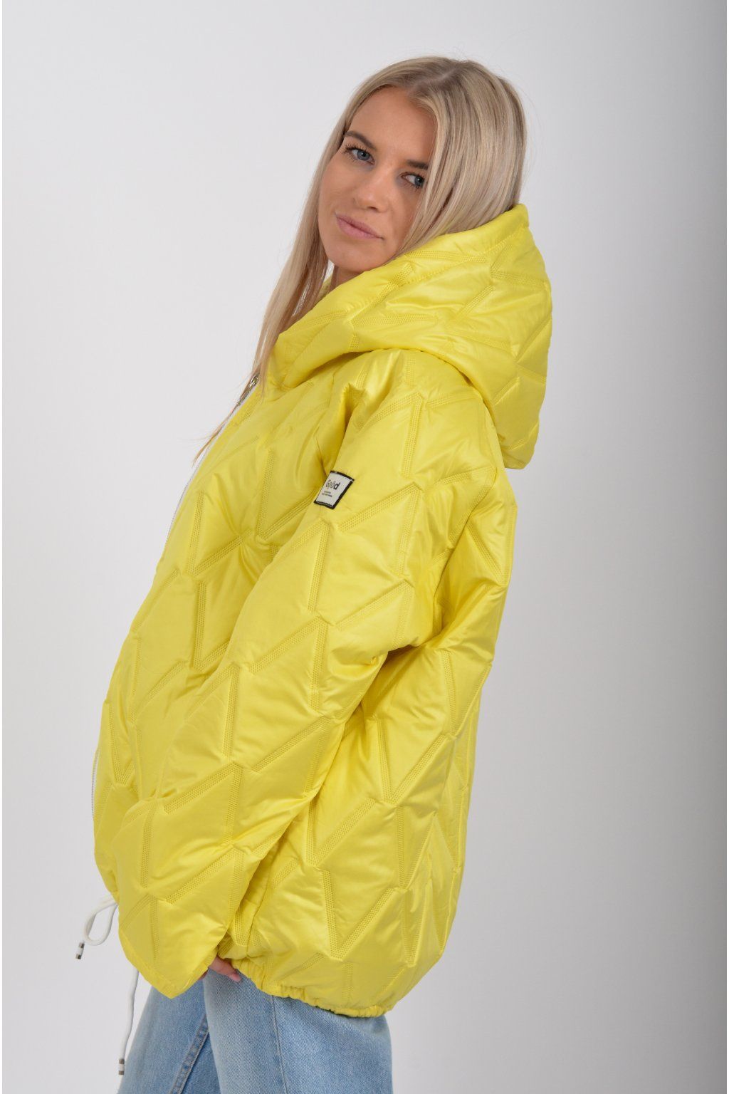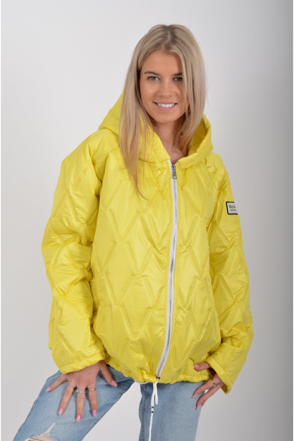 Přechodová bunda s kapuci a kapsami na bocích volnějšího střihu. Bunda je vyrobena z odlehčeného materiálu, tedy je ideální pro jarní nošení. Ve spodní části je zapracovaná tkanice pro libovolné stažení.