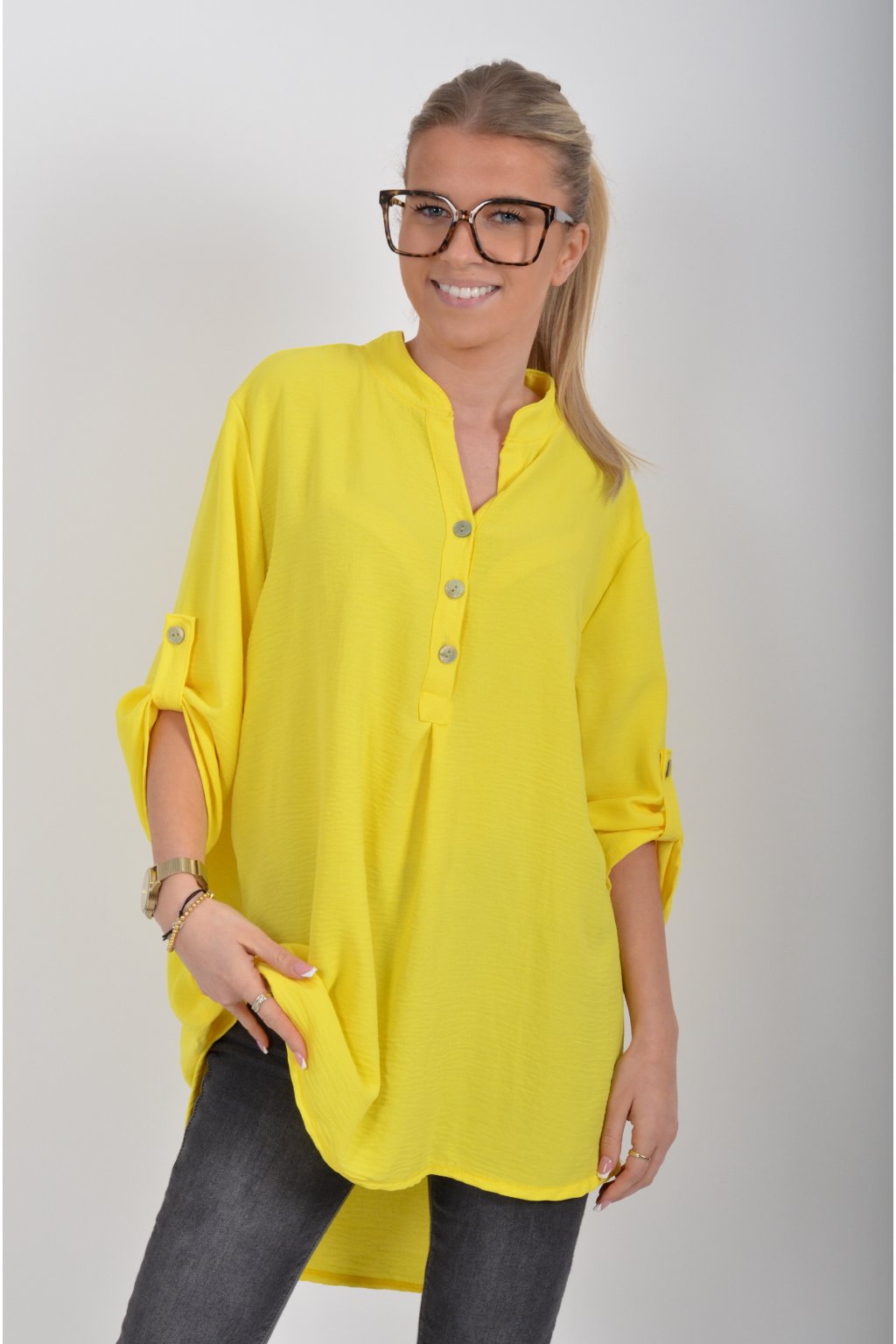 Halenka s tříčtvrtečním rukávem který lze pomocí knoflíku jednoduše zkrátit. Halenka má výstřih do V a zapínaní na tři knoflíky. Je vyrobena z příjemného a lehounkého materiálu. Zadní část halenky je delší než přední.