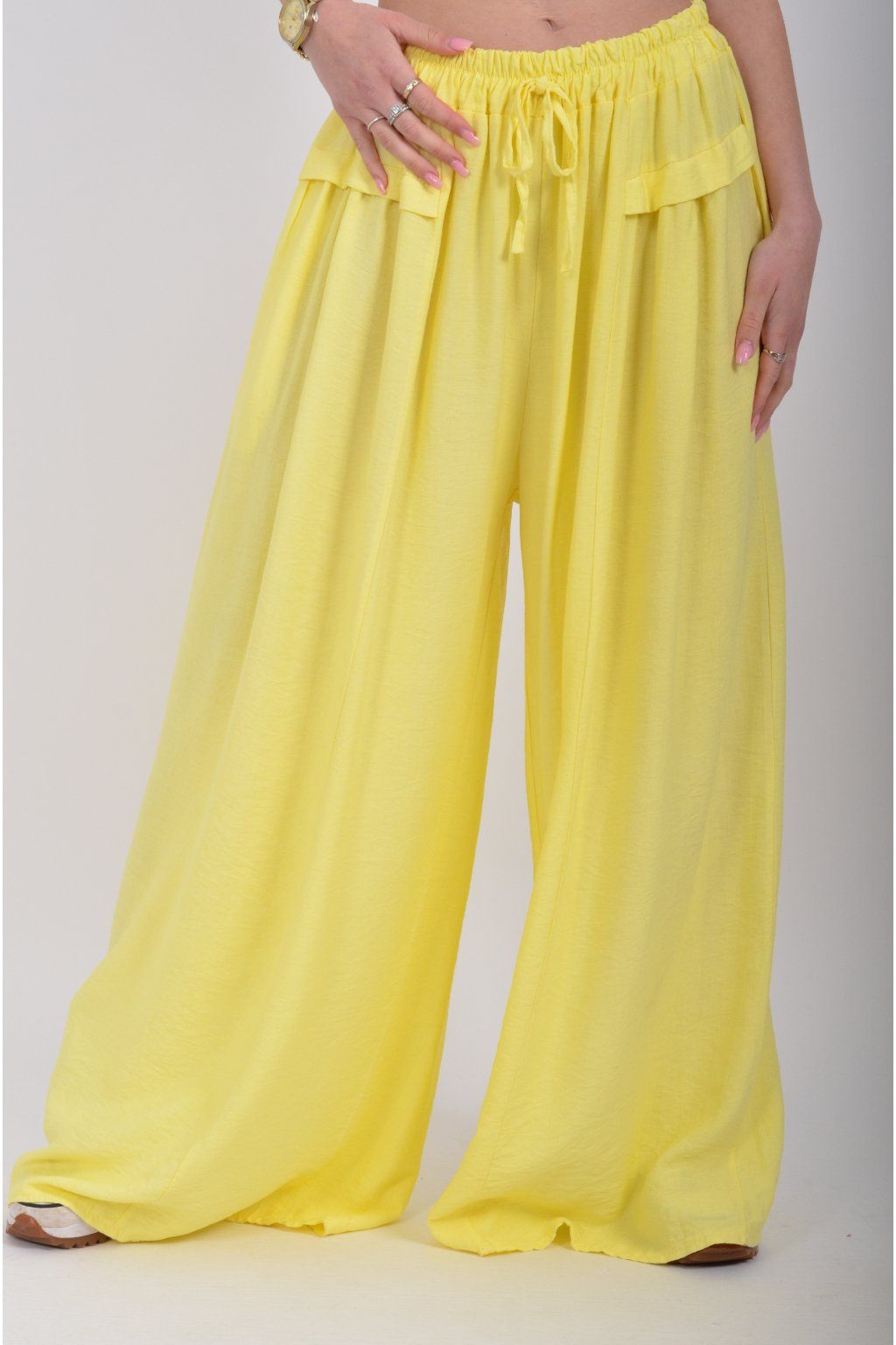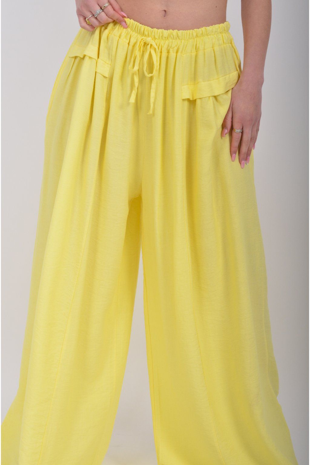 Kalhoty se širokými nohavicemi a kapsami na bocích, které se krásně přizpůsobí postavě, díky zapracované gumě v pase. Jsou vhodné pro každodenní nošení. Šňůrka, v přední části je "falešná" (nejde pomocí ní kalhoty stáhnout v pase)
