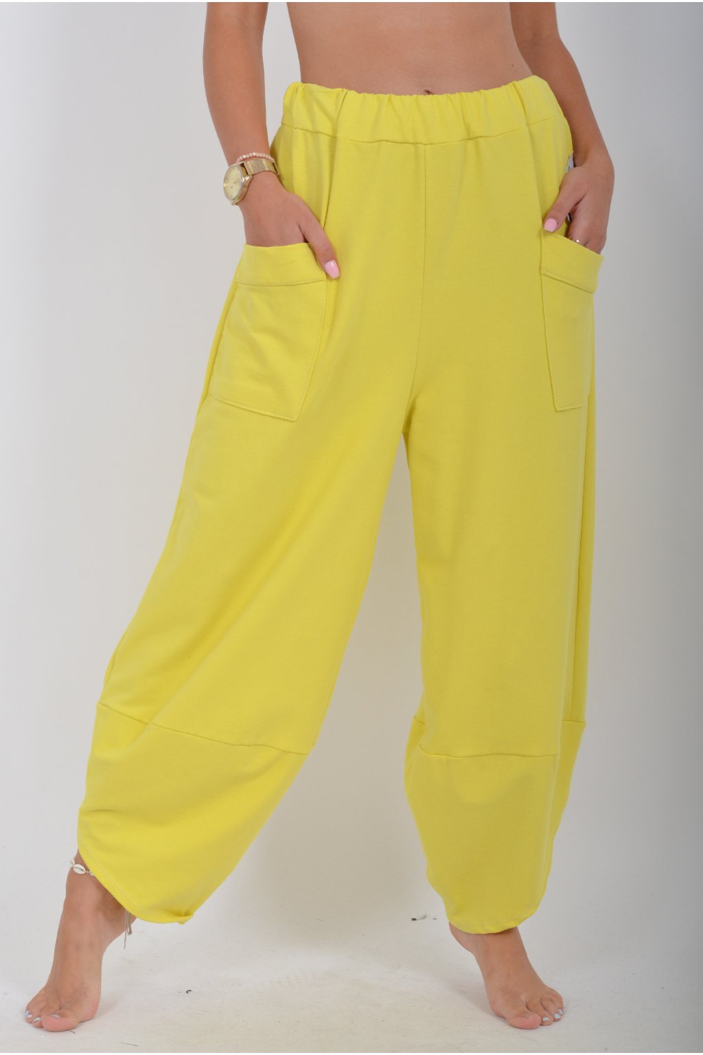 Volnější tepláky s kapsami v přední části. Mají v pase zapracovanou gumu a jsou velice příjemné pro pohodlné nošení.